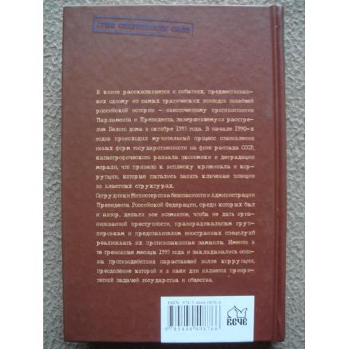 В книге рассказывается о событиях, предшествовавших одному из самых трагических эпизодов новейшей российской истории — ожесточенному противостоянию Парламента и Президента, завершившемуся расстрелом Белого дома в октябре 1993 года. В начале 1990-х годов происходил мучительный процесс становления новых форм государственности на фоне распада СССР, катастрофического развала экономики и деградации морали, что привело к всплеску криминала и коррупции, которые пытались занять ключевые позиции во властных структурах. Этому противостояли органы безопасности, в течение уже нескольких лет сами подвергавшиеся нападкам радикалов всех мастей, измученные реорганизациями и утратой престижа чекистской профессии. Но как это всегда бывает в истории, в этот сложный период нашлось немало людей, несмотря ни на что самоотверженно выполняющих свой долг, зачастую с риском для жизни решающих задачи по обеспечению безопасности государства, не пасующих перед угрозами и не рассчитывающих на награды. Автор и некоторые его коллеги сами находились в эпицентре происходящих событий, что предопределило документальный характер повествования. Сотрудники Министерства безопасности и Администрации Президента Российской Федерации делали все возможное, чтобы не дать организованной преступности, праворадикальным группировкам и представителям иностранных спецслужб реализовать их замыслы. По известным причинам имена и фамилии некоторых участников событий изменены, а отдельные фрагменты происходящего имеют иносказательный смысл. В книге приводятся выдержки из подлинных документов того времени, воспоминания участников событий и публикации в средствах массовой информации, позволяющие почувствовать дух эпохи.