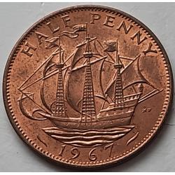 OriginalАнглия 1/2 пенни 1967 год ПАРУСНИК!!! ОТЛИЧНОЕ СОСТОЯНИЕ!!!!! №с53