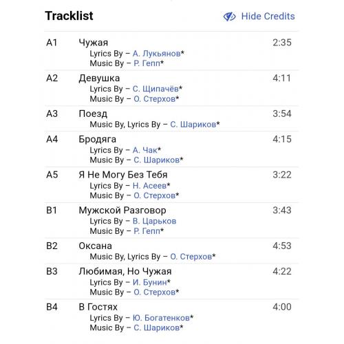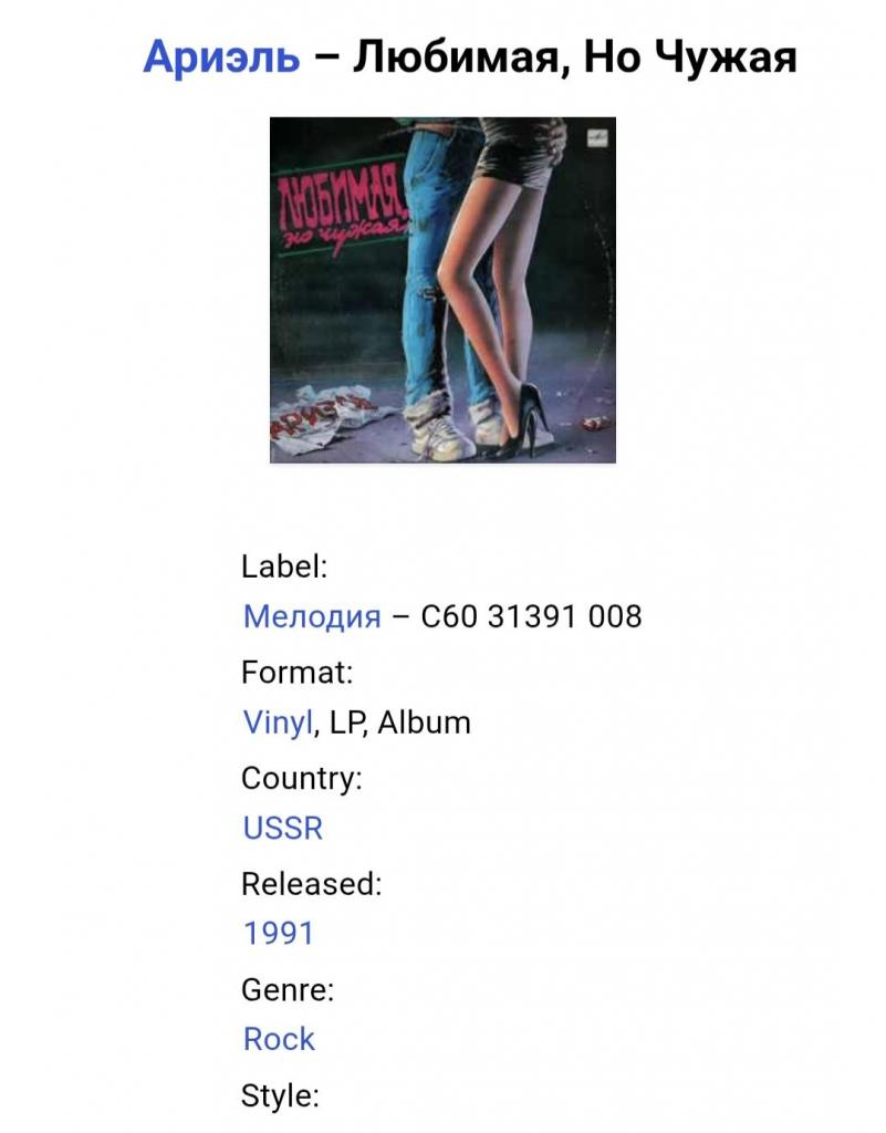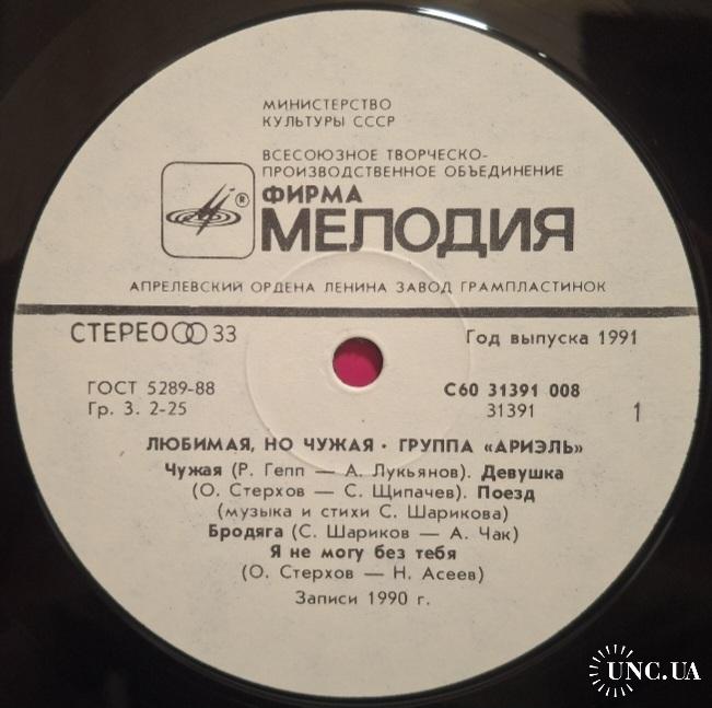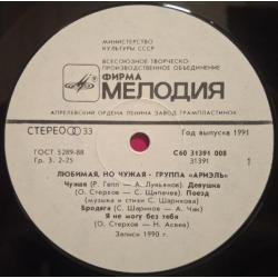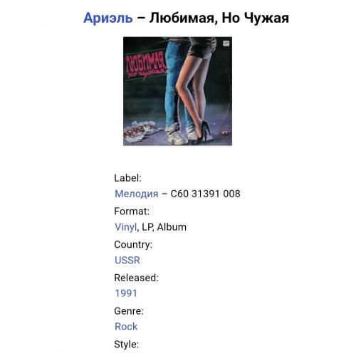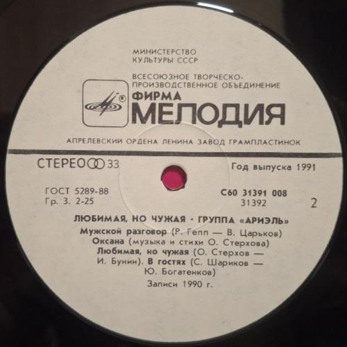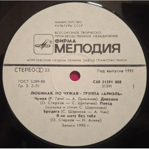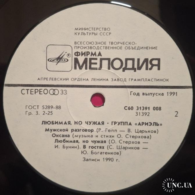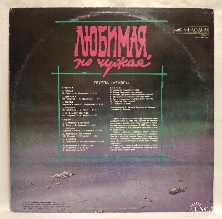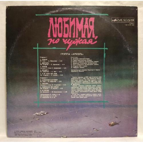 Вінілова платівка. Одинадцятий, в дискографії, студійний альбом, російської (радянської) поп-рок групи Аріель, до складу якої, на той час входили А. Тібеліус, О. Стерхов, Р. Гепп, С. Шаріков, Б. Каплун, Л. Гуров та С. Антонов (Любимая, Но чужая) 1990. Випуск фірми (Мелодія) СРСР, Апрелєвський завод грамплатівок, 1991-ий рік. Оригінальне першопресове видання. Лімітований тираж (Limited Edition). Рідкісне (Rare). Стан платівки NM-. Стан конверту EX+. Відправка по Україні службами доставки: Нова Пошта, Укр Пошта, Делівері. Також відправляємо посилки за кордон по цілому світу.