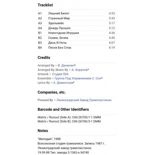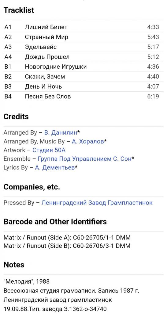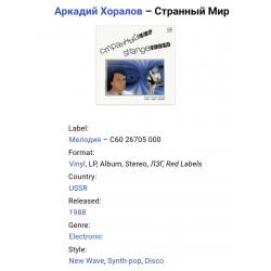 Вінілова платівка. Третій, в дискографії, студійний альбом, Українського (радянського), композитора і виконавця стилю поп-музика, учасника легендарних вокально інструментальних ансамблів Червона Рута, Грифы, Поют Гитары, Самоцветы, Красные Маки, Эдельвейс, Аркадія Хоралова і групи під керівництвом Сені Сон (Странный Мир) 1987. Випуск фірми (Мелодія) СРСР, Ленінградський завод грамплатівок, 1988-ий рік. Стан платівки ЕХ+. Стан конверту ЕХ+. Відправка по Україні службами доставки: Нова Пошта, Укр Пошта, Делівері. Також відправляємо посилки за кордон по цілому світу.