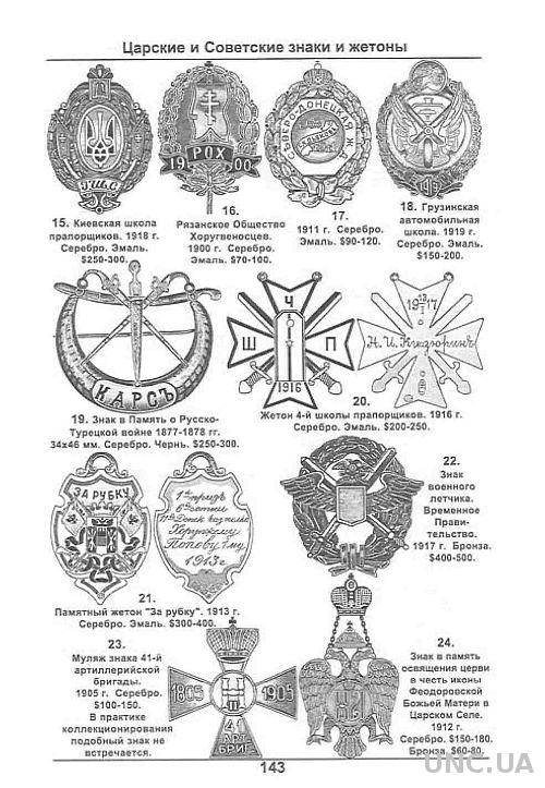 Данный каталог может быть полезен как в определении, так и в оценки коллекционного материала - монет, знаков, наград, жетонов и предметов антиквариата. Приведены цены на год издания каталога.