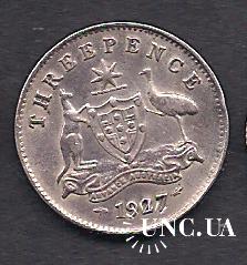 Originalмонета 3 пенса, 1927 г., монета б/у не мытая, серебро, качество VF, стоимостью 130 грн., по каталогу Krause - 3,0 $.