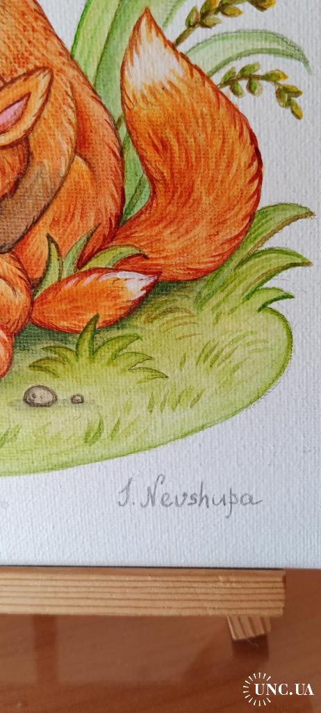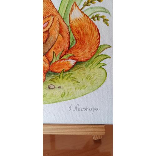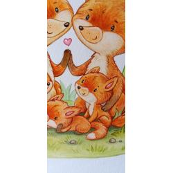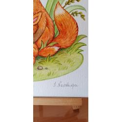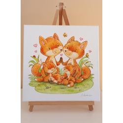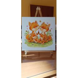 2021-....Авторська картина на полотні "Fox family". Розмір 25х25см, акрил, лак.