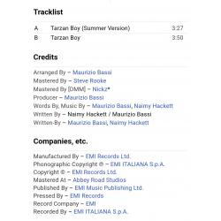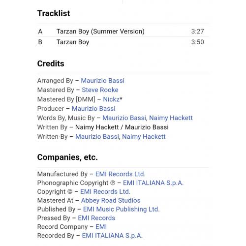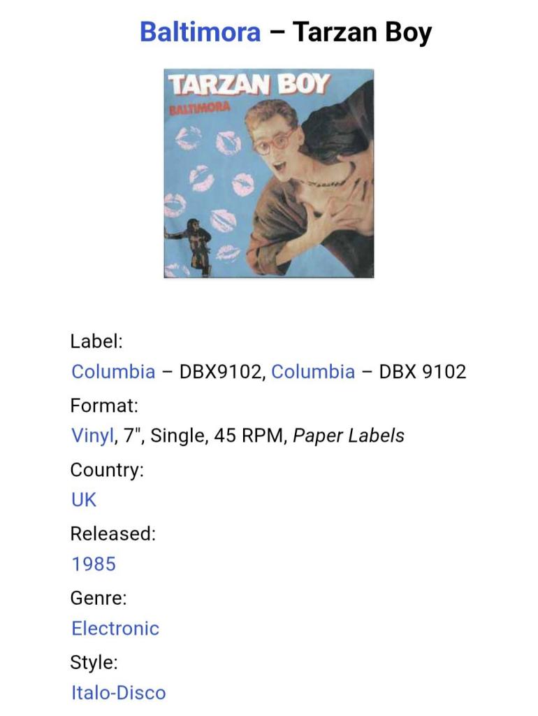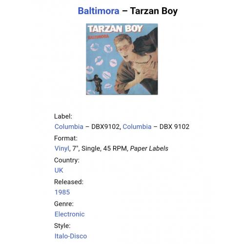 Вінілова платівка. Перший, дебютний, в дискографії, студійний міні сингл (ЕР 7), Італійської поп-групи із Мілана, стилю італо диско, Baltimora, до складу якої входили продюсер Мауріціо Бассі та музичний виконавець Джимі МскШейн (Tarzan Boy) 1985. Випуск фірми (Columbia) UK, 1985-ий рік. Оригінальне, першопресове Британське видання. Стан платівки ЕХ. Конверт глянцевий. Стан конверту ЕХ+. Відправка по Україні службами доставки: Нова Пошта, Укр Пошта, Делівері. Також відправляємо посилки за кордон по цілому світу.