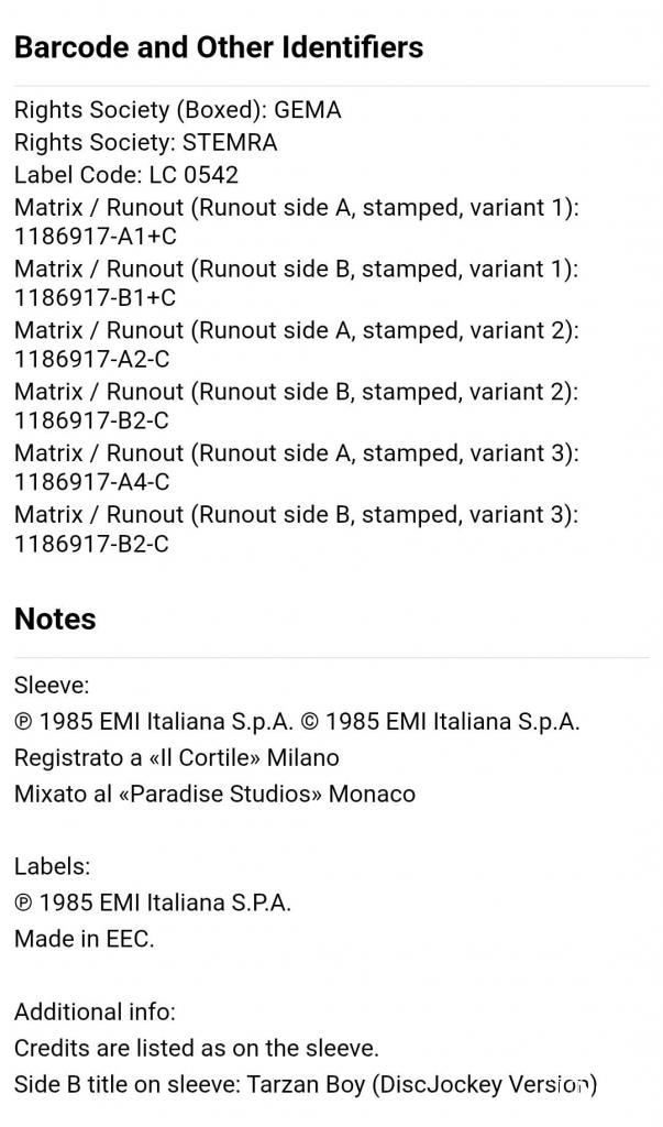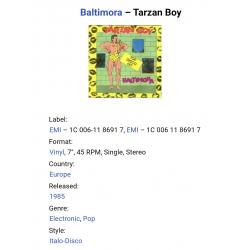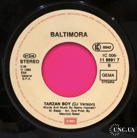 Вінілова платівка. Перший, дебютний, в дискографії, студійний міні сингл (ЕР 7), Італійської поп-групи із Мілана, стилю італо диско, Baltimora, до складу якої входили продюсер Мауріціо Бассі та музичний виконавець Джимі МскШейн (Tarzan Boy) 1985. Випуск фірми (EMI) Holland, 1985-ий рік. Оригінальне, першопресове Голландське видання. Стан платівки ЕХ+. Стан конверту ЕХ+. Відправка по Україні службами доставки: Нова Пошта, Укр Пошта, Делівері. Також відправляємо посилки за кордон по цілому світу.