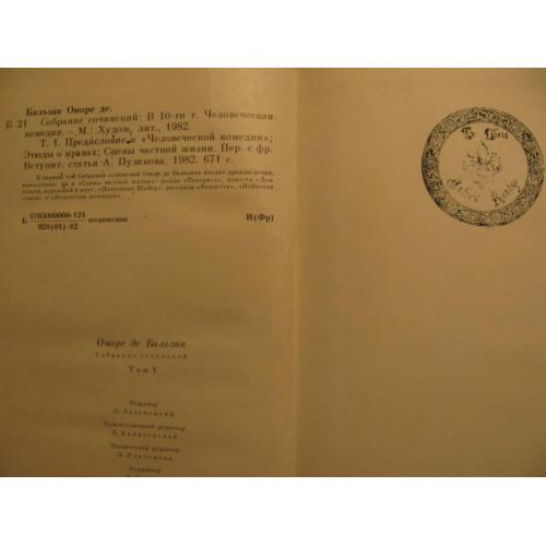 В представленном Вам сегодня роскошном подарочном 10-томном собрании сочинений (Москва, «Художественная литература»,1982-1987гг.) Оноре де Бальзака(1799-1850) широко представлены лучшие литературные произведения всемирно известного французскогописателя, авторитетного мастера любовных, психологических и социально-драматических романов. Великий французский прозаик Оноре Бальзак однозначно принадлежит к тем писателям, удел которых - бессмертие. Творчество его вошло, как частица живой силы, в могучий поступательный ход общественного развития всего человечества.
