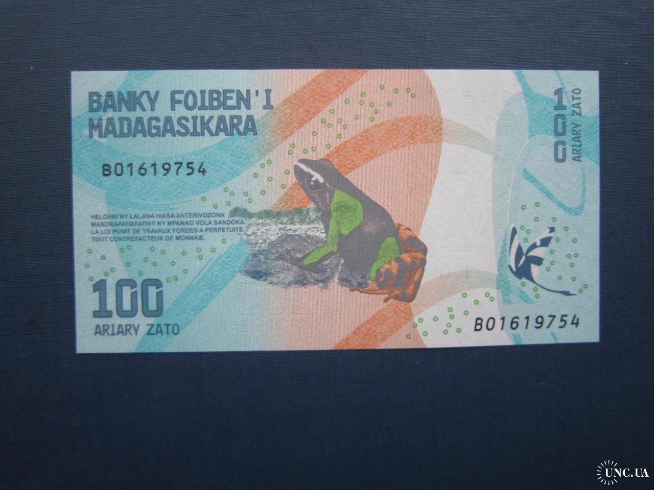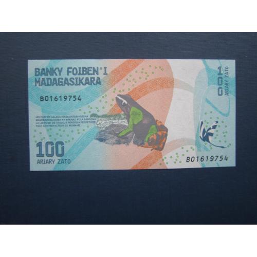 Банкнота 100 аріарі Мадагаскар 2017 фауна жаба UNC прес