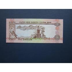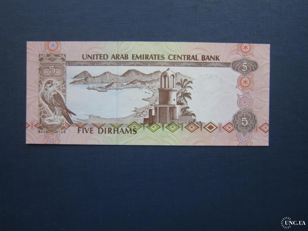 Банкнота 5 дирхамів ОАЕ Об'єднані Арабскі Емірати рання орел рожева UNC прес