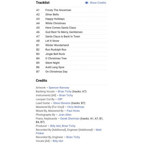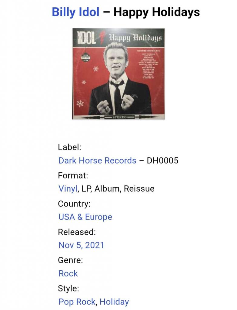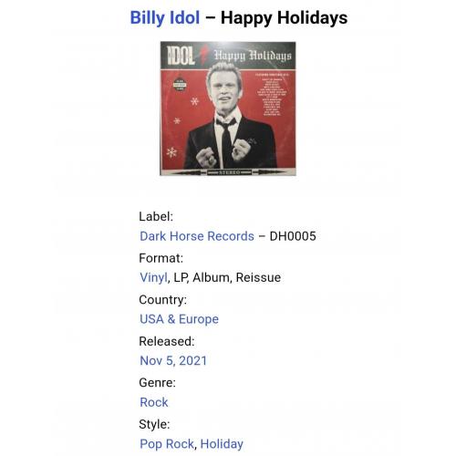 Вінілова платівка. Сьомий, студійний каталожний альбом, Англо-Американського хард-рок, пост-панк музиканта, бувшого лідера групи Generation X, Вільяма Майкла Альберта Броуд, більше відомого під сценічним ім,ям Billy Idol (Happy Holidays) 2006. Випуск фірми (Dark Horse Records) USA & Europe, 2021-ий рік. Лімітований тираж (Limited Edition). Нове, запаковане. Категорія S/S. Відправка по Україні службами доставки: Нова Пошта, Укр Пошта, Делівері. Також відправляємо посилки за кордон по цілому світу.