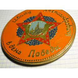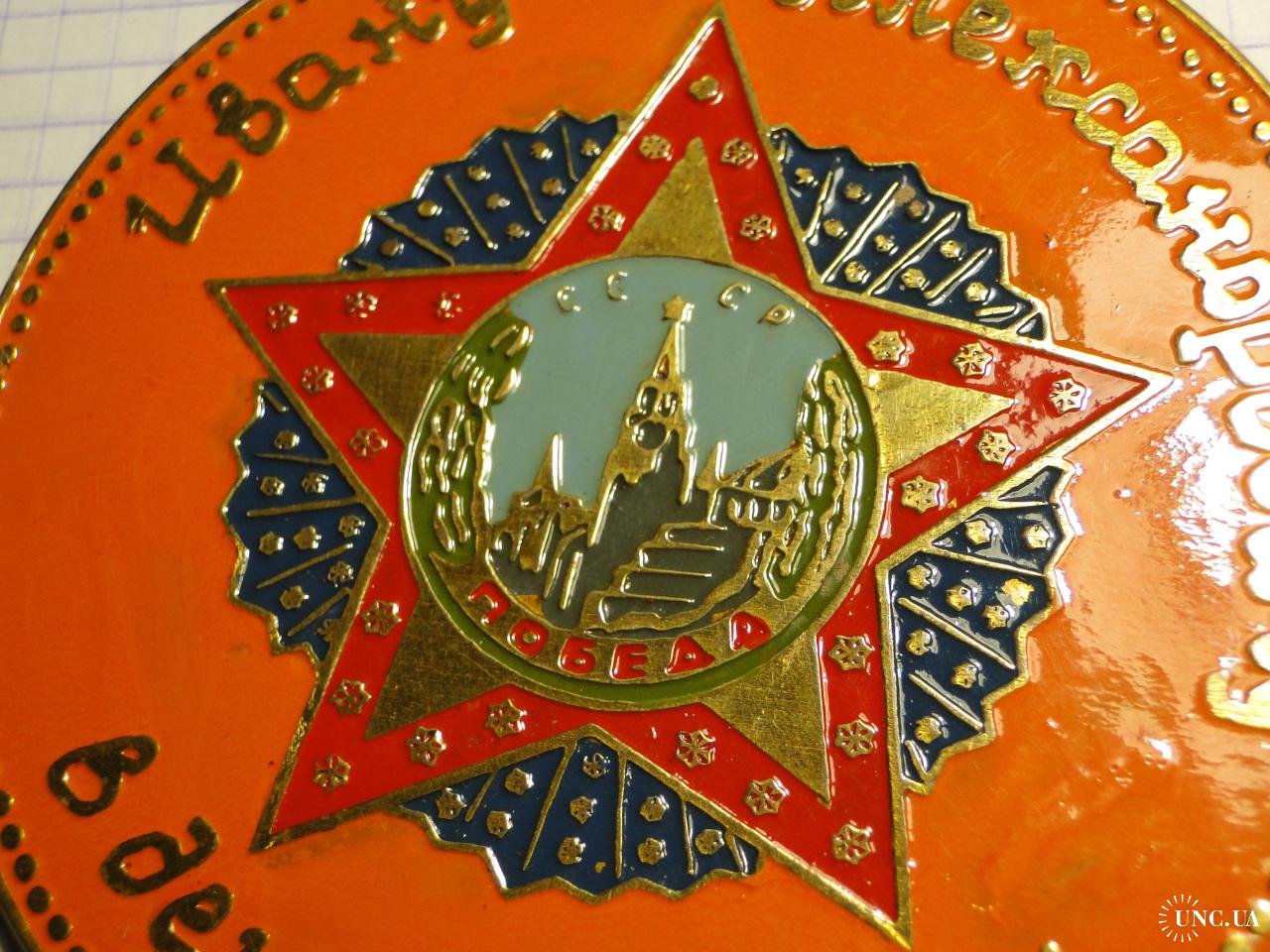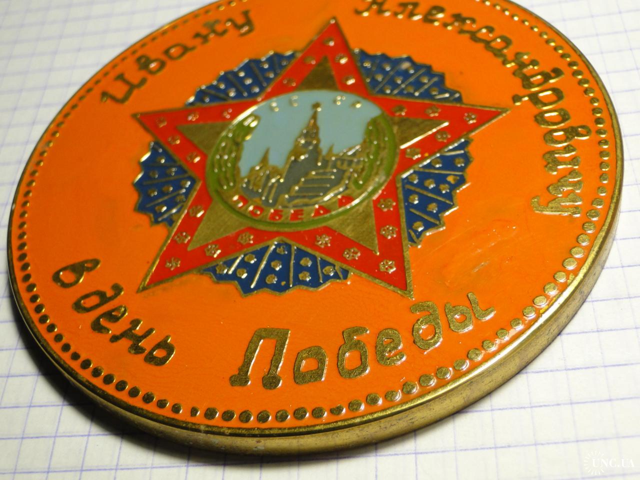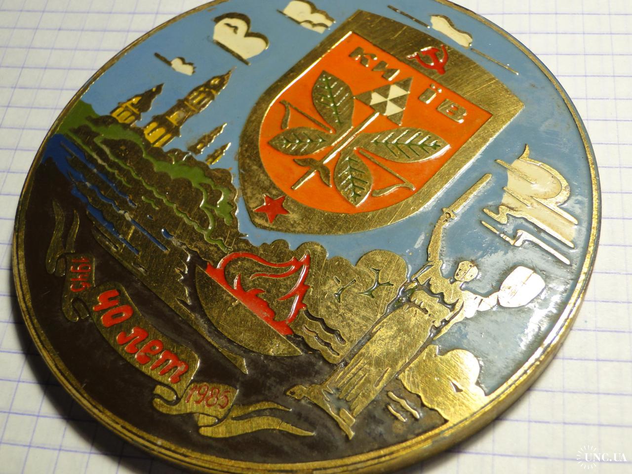 Большая бронзовая медаль в день 40 летия Победы. В коробке. Диаметр 9,5 см. Тяжелая, Вес 345 грамм.
