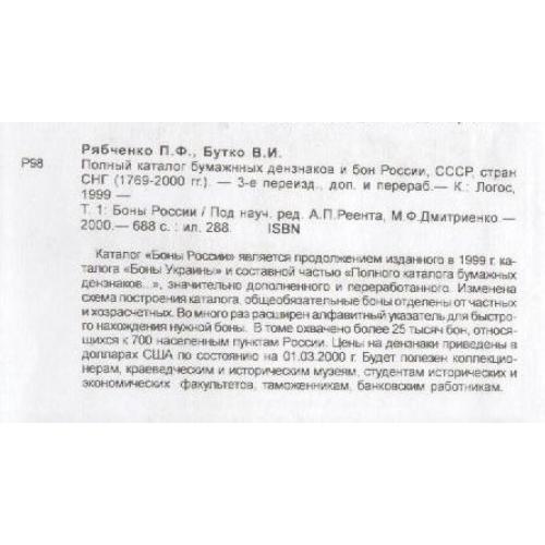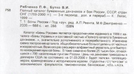 Доп. информация: Боны России (Полный каталог бумажных денежных знаков и бон России, СССР, стран СНГ (1769-2000гг.)