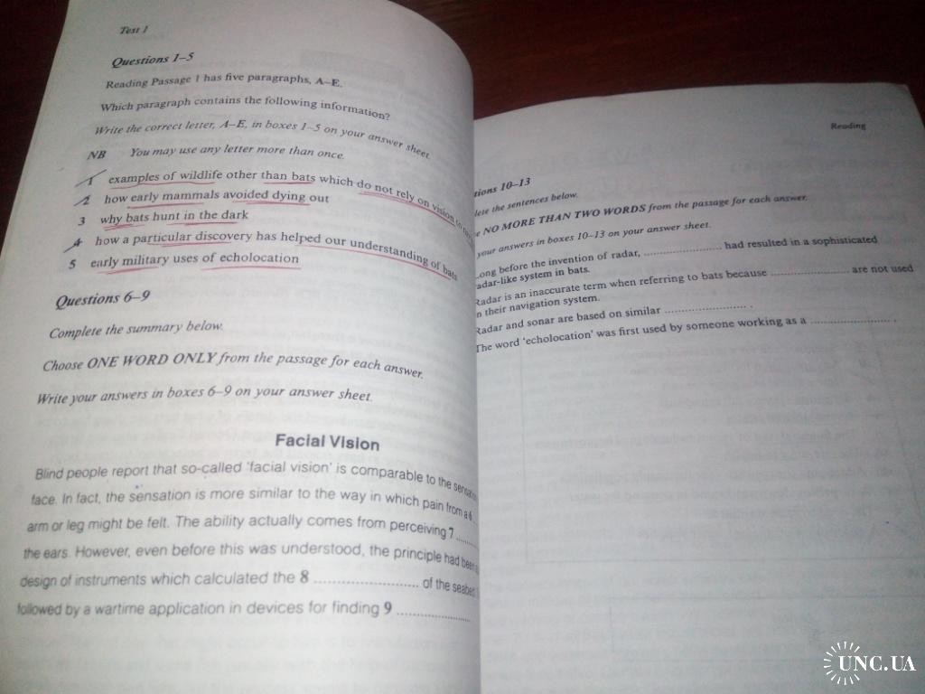 На 10-15% страниц книги ключевые слова подчеркнуты шариковой ручкой, а ответы карандашом.