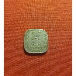 OriginalЦейлон 5 центов 1910г. CEYLON, Эдуард VII, нечастые