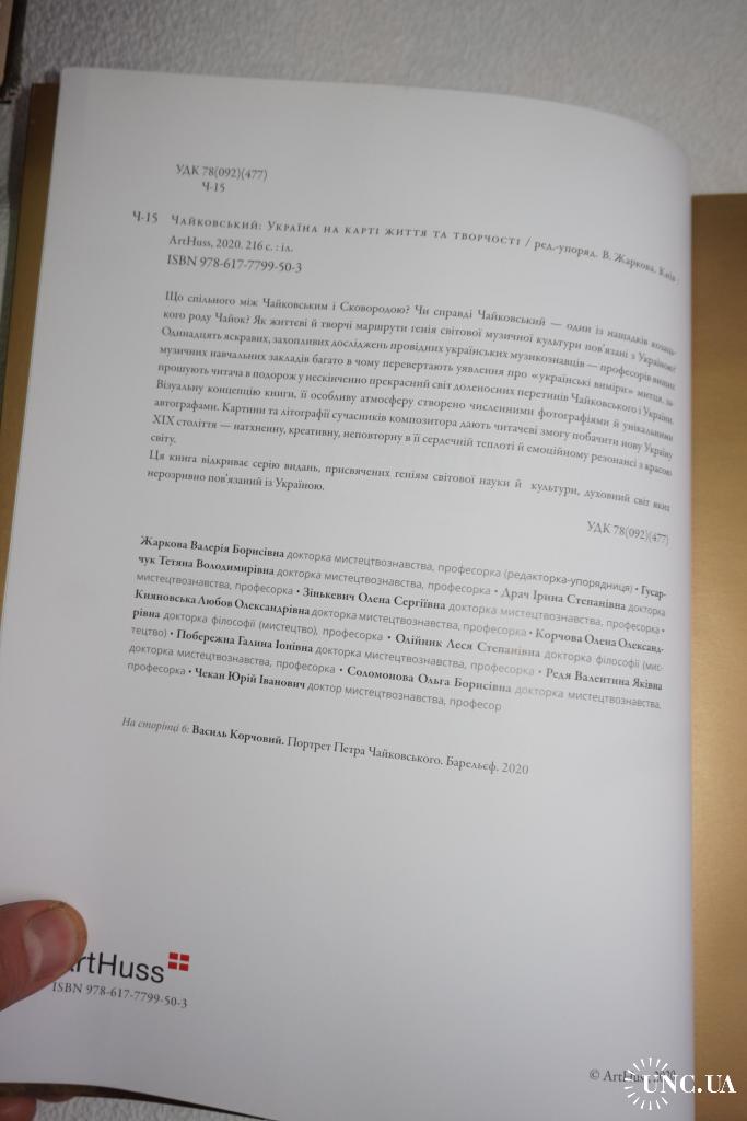 Що спільного між Чайковським і Сковородою? Чи справді Чайковський — один із нащадків козацького роду Чайок? Як життєві й творчі маршрути генія світової музичної культури пов’язані з Україною? Скільки безсмертних шедеврів написав Чайковський на українській землі? Протягом майже трьох десятиліть композитор щороку бував у мальовничих українських містах і містечках, і ці гостини залишилися на сторінках його листів світлими спогадами, а в історії культури — шедеврами, адже краса української землі глибоко відлунювала в душі композитора, перетворюючись на музичні сторінки «Лебединого озера», «Дитячого альбому», «Мазепи» та інших «хітів». Провідні українські музикознавці — професори вищих музичних навчальних закладів запрошують читача в захопливу подорож до безмежно прекрасного світу доленосних перетинів Чайковського й України. Ця книга — не академічний довідник, хоча вона й спирається на документальні джерела, унікальні архівні матеріали фондів і бібліотек, охоплює широке коло спеціалізованої літератури.