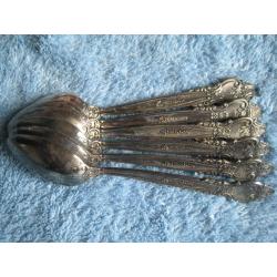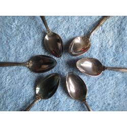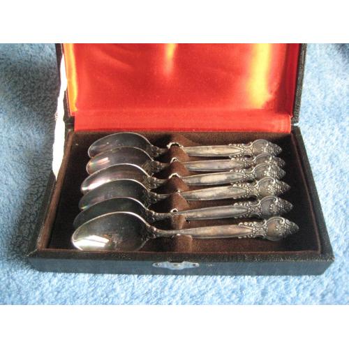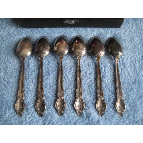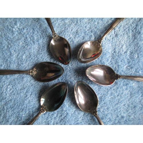 №869. Оригінальний набір посріблених (мельхіорових) чайниих ложок, Троянда Київ МНЦ 1970-1980рр., СРСР, в доброму колекційному стані (ложки не використовувались, рідна патина),див.фото. На виробах є клеймо завода. Довжина ложок - 14,1см. Пересилка по Україні - Нова пошта, Укрпошта. Для киян можливість зустрічі та перегляду (неділя метро Нивки). В РФ и Белоруссию не отправляю!