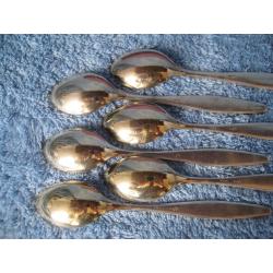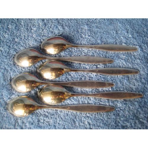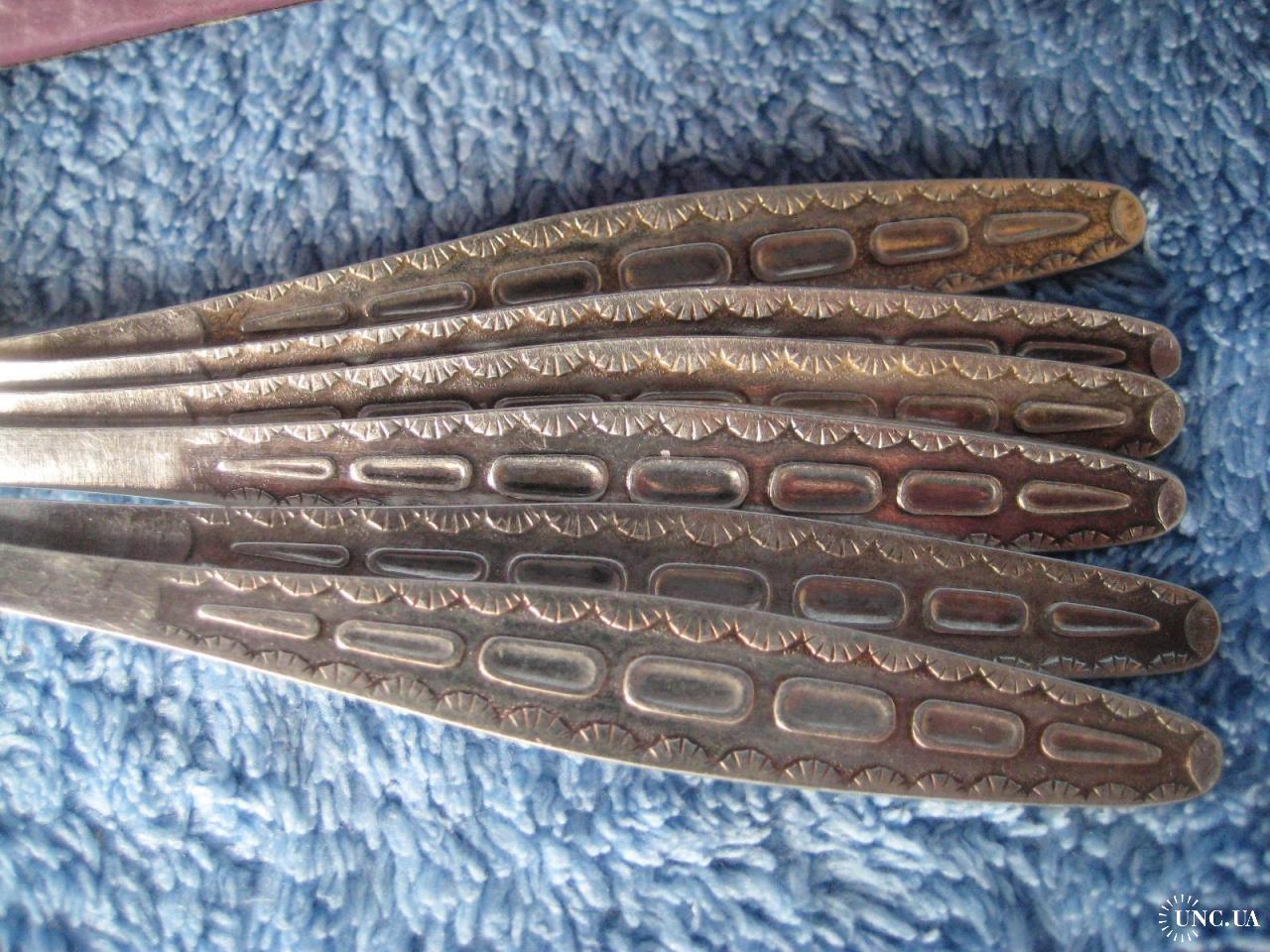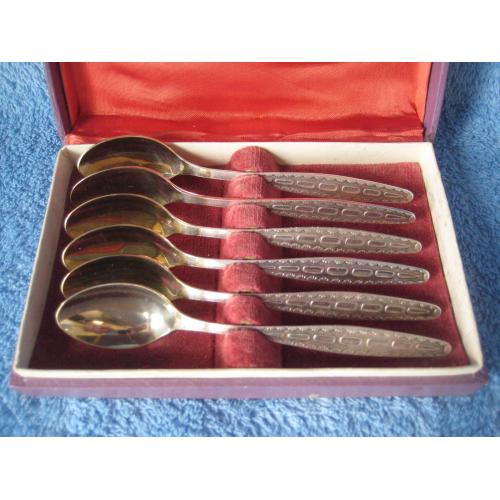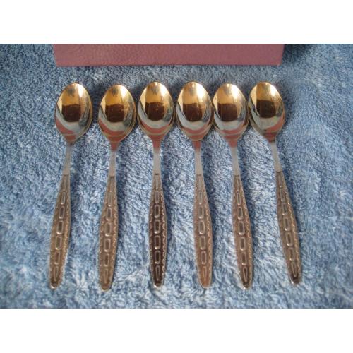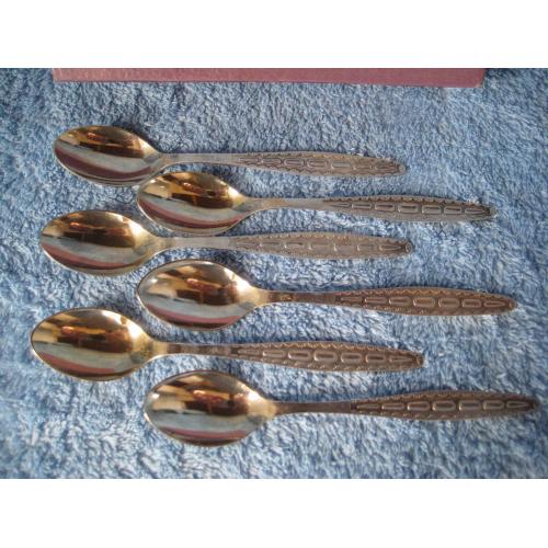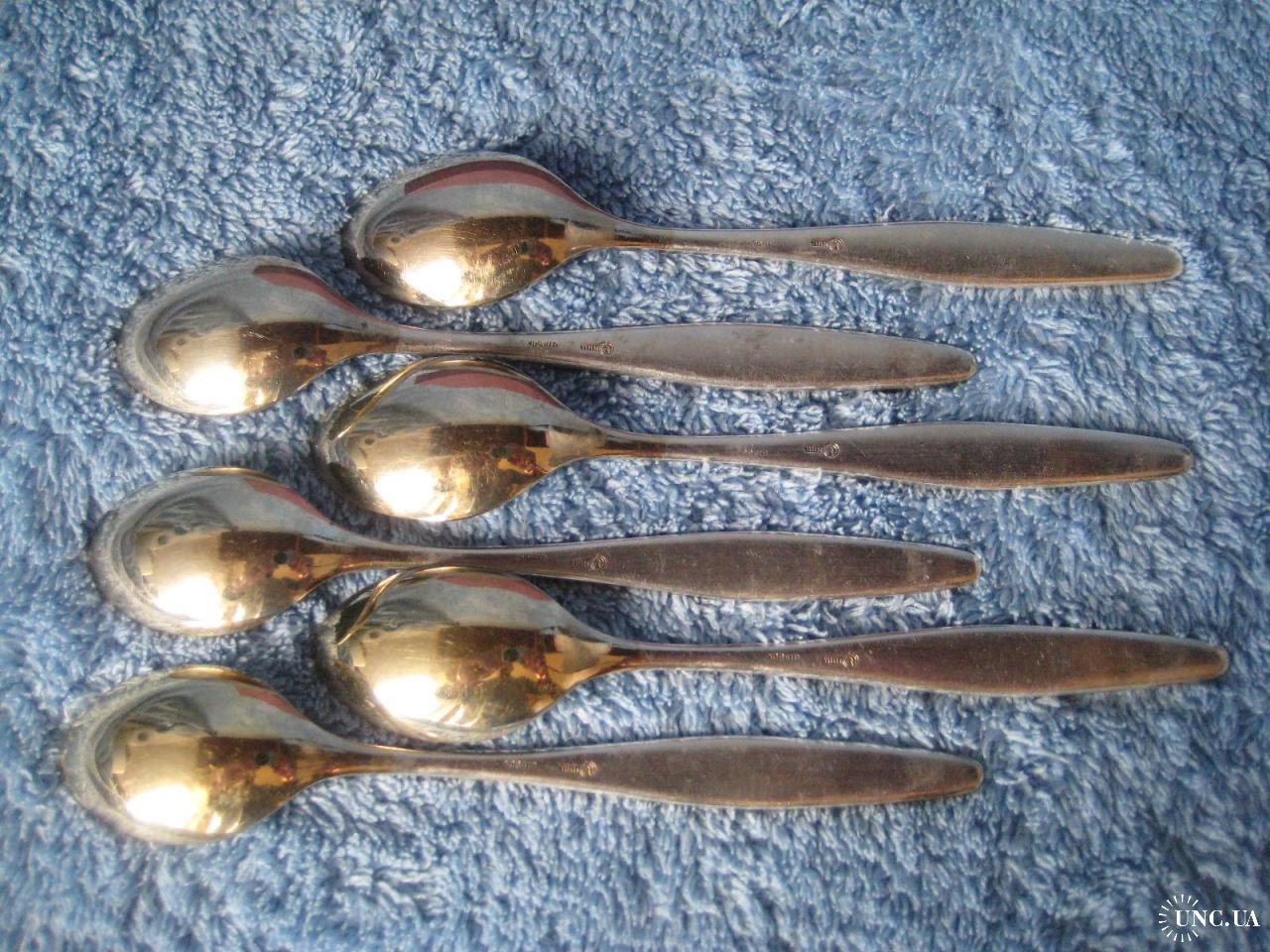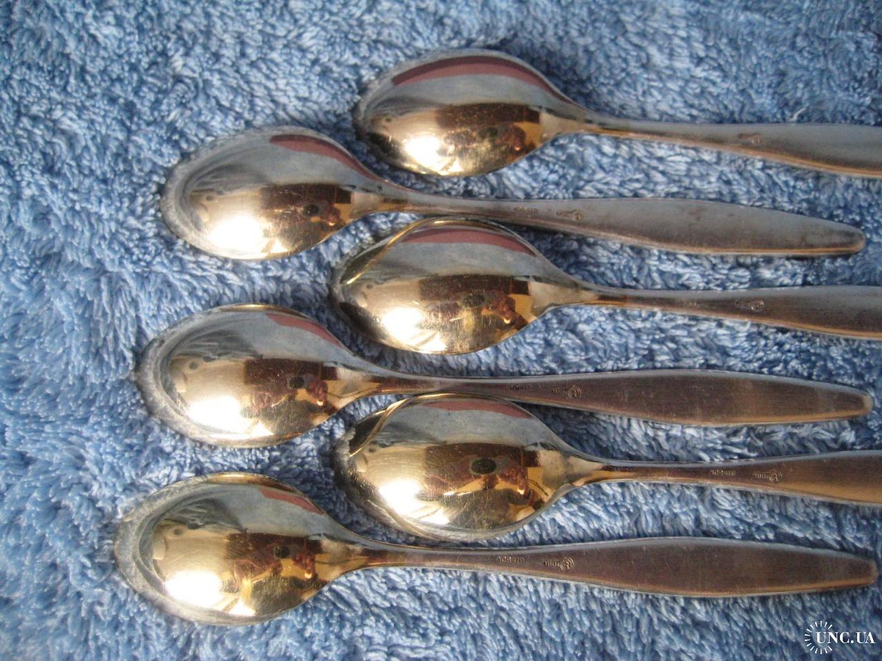 1961-1980№877. Оригинальный набор чайных ложек в коробке - 6 шт. (посеребрение, позолота) - Кольчугино МНЦ 1970-1980 СССР, в хорошем коллекционном состоянии (родная патина),см.фото. На изделиях имеется клеймо завода - Глухарь. Длина ложек - 14см. Пересылка по Украине - Новой почтой, Укрпочтой. Для киевлян возможность встречи и просмотра (воскр. метро Нивки). В РФ и Белоруссию не отправляю!