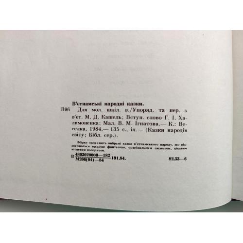 В'єтнамські народні казки. Составление и перевод с вьетнамского Марии Кашель. Составление и перевод с вьетнамского Марии Кашель. Художник Вадим Игнатов. Серия: Казки народів світу. К.: Веселка. 1984 г.; формат: увеличенный.