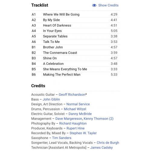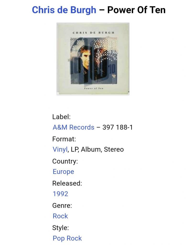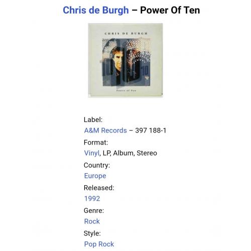 Вінілова платівка. Дванадцятий, в дискографії, студійний альбом Британсько-Ірландського поп-рок виконавця, Аргентинського походження, Крістофера Джона Девісіона Бурга, більше відомого під скороченим сценічним ім'ям Кріс Де Бург (Power Of Ten) 1992. Випуск фірми (A&M Records) Holland, 1992-ий рік. Оригінальне, першопресове Голландське видання. Стан платівки ЕХ. Конверт глянцевий. Стан конверту ЕХ+. В комплекті внутрішня вставка (Ois). Відправка по Україні службами доставки: Нова Пошта, Укр Пошта, Делівері. Також відправляємо посилки за кордон по цілому світу.