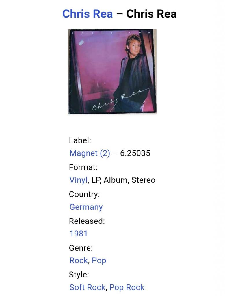 1981-2000Вінілова платівка. П'ятий в дискографії, студійний альбом, Британського поп-рок, блюз-рок музиканта, покійного вже, Крістофера Ентоні Рі (Chris Rea) 1981. Випуск фірми (Magnet) Germany, 1981-ий рік. Оригінальне, першопресове, Німецьке видання. Стан платівки NM-. Конверт глянцевий. Стан конверту ЕХ+. В комплекті внутрішня ставка. Відправка по Україні службами доставки: Нова Пошта, Укр Пошта, Делівері. Також відправляємо посилки за кордон по цілому світу.