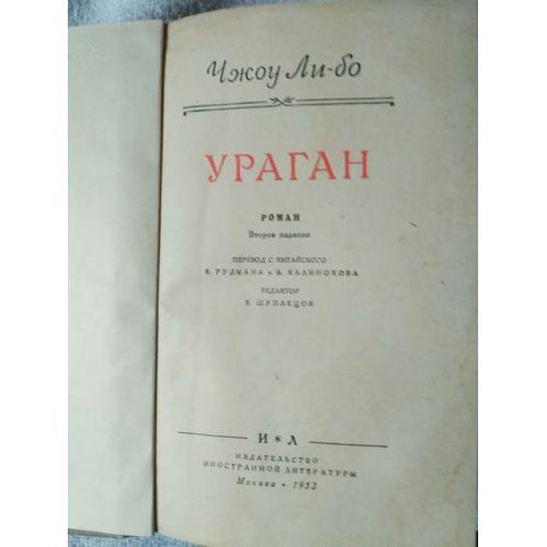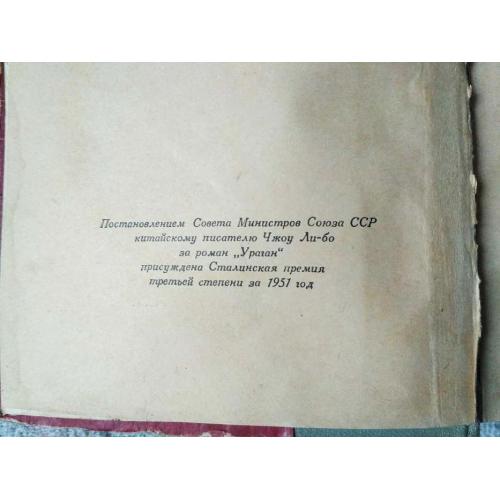 Чжоу Ли-бо. УРАГАН. Роман. Изд-во иностранной литературы, М., 459 стр., 1952 г. За роман "Ураган" китайскому писателю Чжоу Ли-бо присуждена сталинская премия за 1951г. Состояние б\у, см. фото Вопросы, уточнения до покупки
