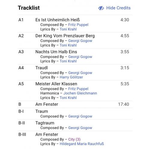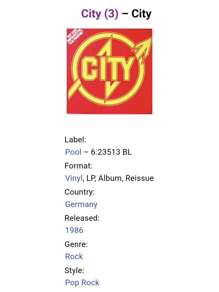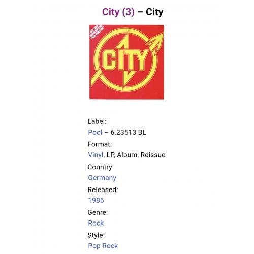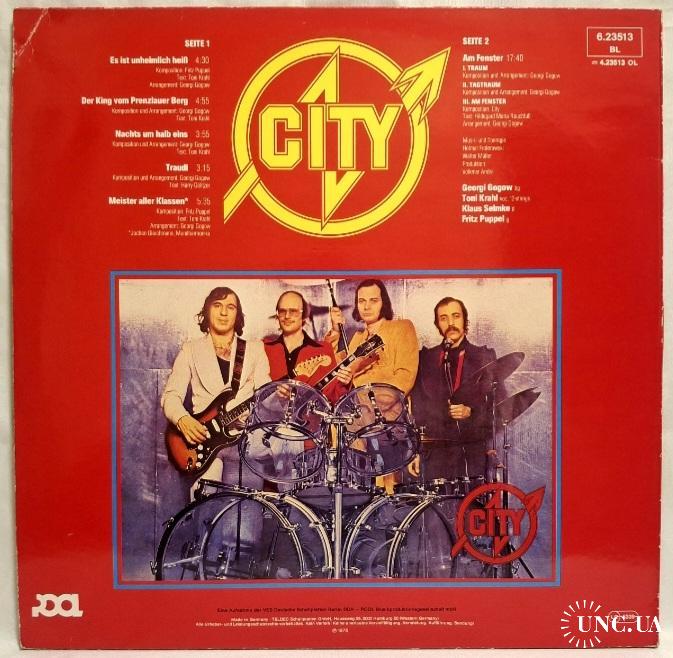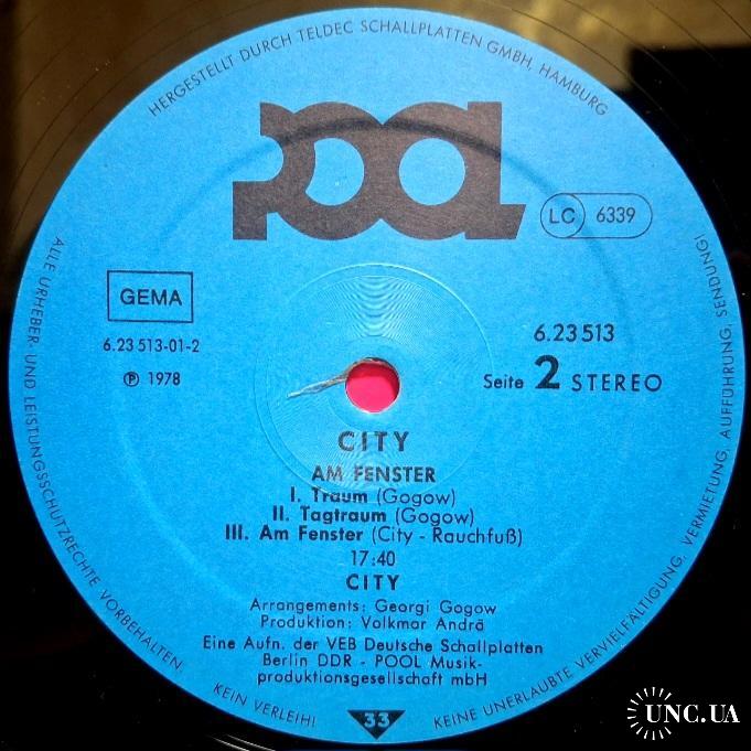Вінілова платівка. Перший, дебютний, в дискографії, студійний альбом, Німецької хард-рок, арт-рок, фольк-рок групи з Берліну, City, до складу якої, на той час, входили Джорджі Горов, Тоні Крахл, Клаус Селмке та Фріц Пуппел (Am Fenster) 1978. Випуск фірми (Pool) Germany, 1986-ий рік. Оригінальне, Західно-Німецьке перевидання. Стан платівки NM-. Конверт глянцевий. Стан конверту EX+. Відправка по Україні службами доставки: Нова Пошта, Укр Пошта, Делівері. Також відправляємо посилки за кордон по цілому світу.