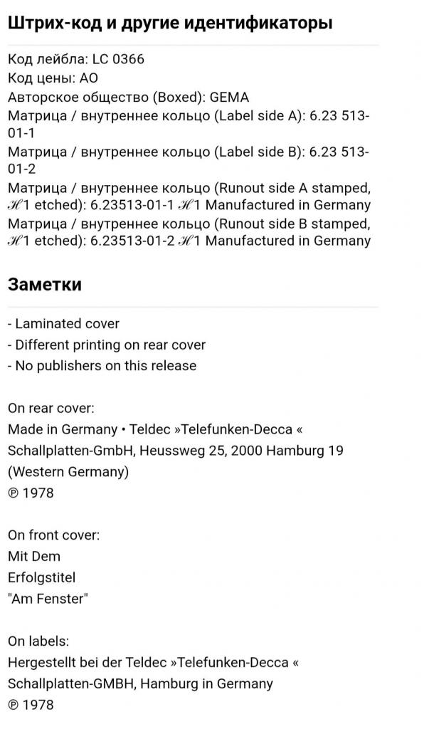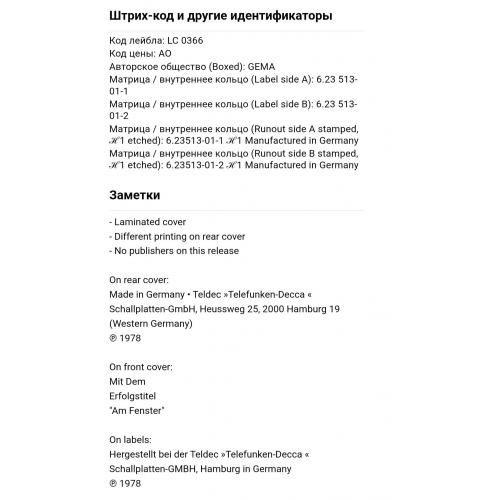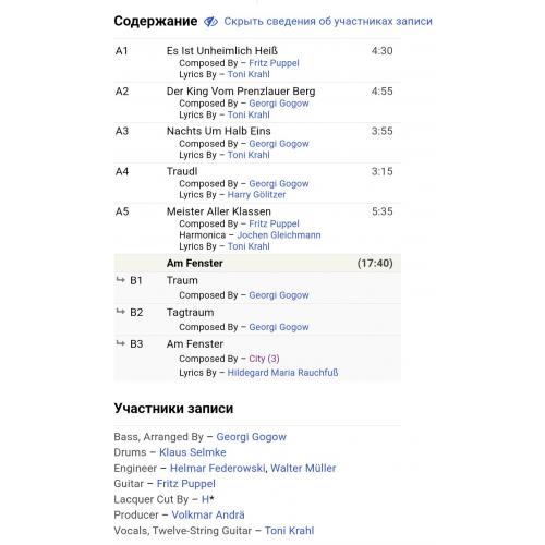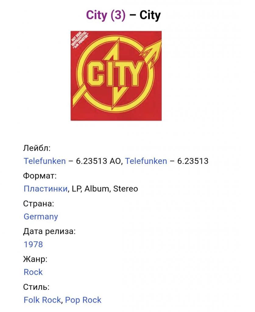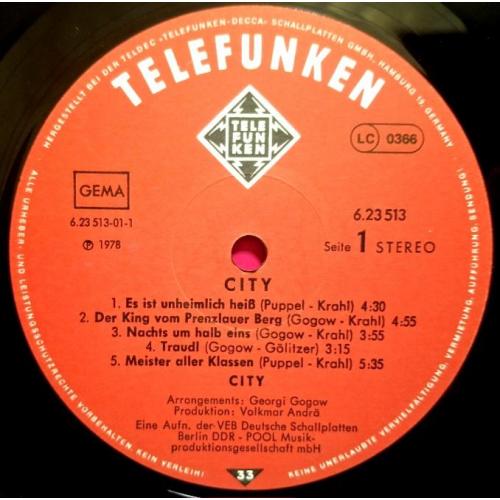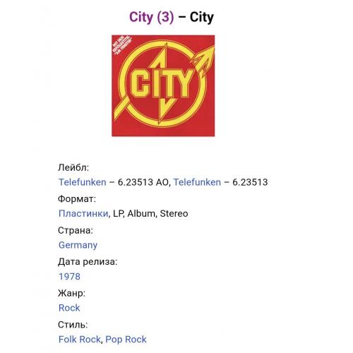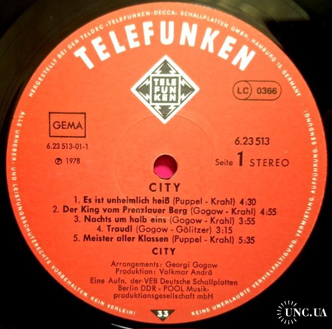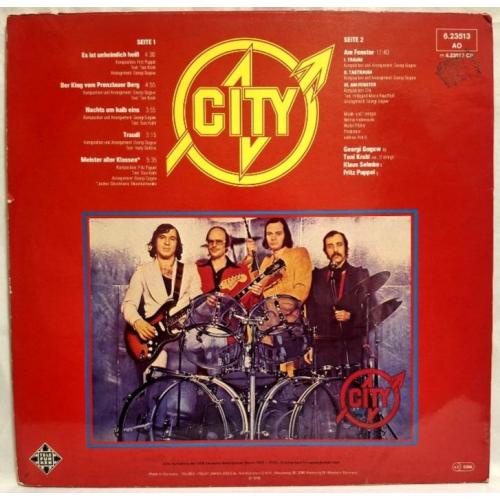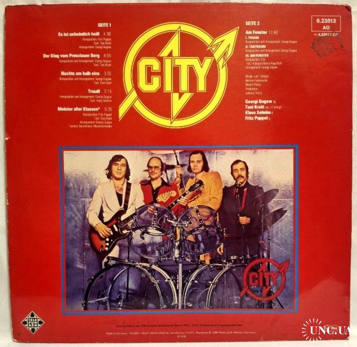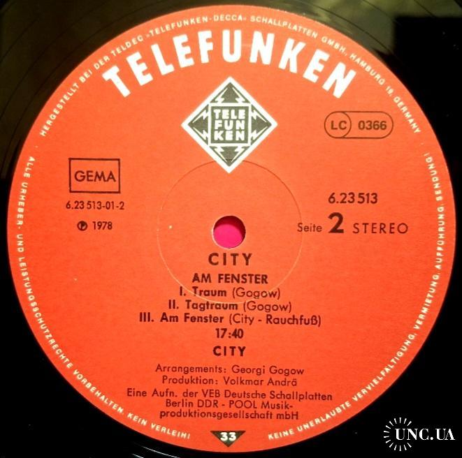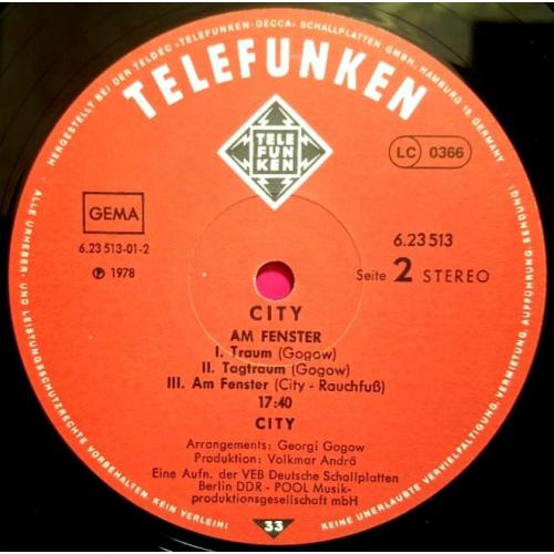 Вінілова платівка. Перший, дебютний, в дискографії, студійний альбом, Німецької хард-рок, арт-рок, фольк-рок групи з Берліну, City, до складу якої, на той час, входили Джорджі Горов, Тоні Крахл, Клаус Селмке та Фріц Пуппел (Am Fenster) 1978. Випуск фірми (Telefunken) Germany, 1978-ий рік. Оригінальне, Західно-Німецьке першопресове видання. Стан платівки ЕХ+. Конверт глянцевий. Стан конверту EX+. Відправка по Україні службами доставки: Нова Пошта, Укр Пошта, Делівері. Також відправляємо посилки за кордон по цілому світу.