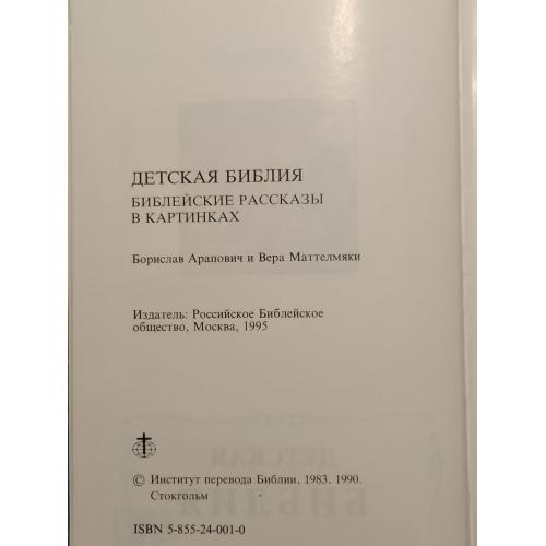 Детская библия. Библейские рассказы в картинках. Издательство Российское библейское общество 1995 год. Блок из мелованной бумаги. Состояние очень хорошее, но есть незначительные царапины на нижнем ребре обложки (на фото).