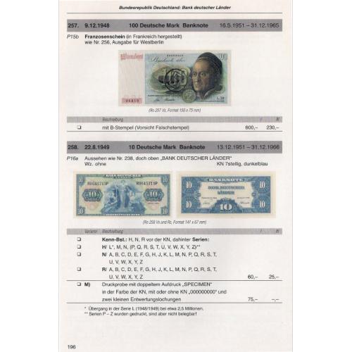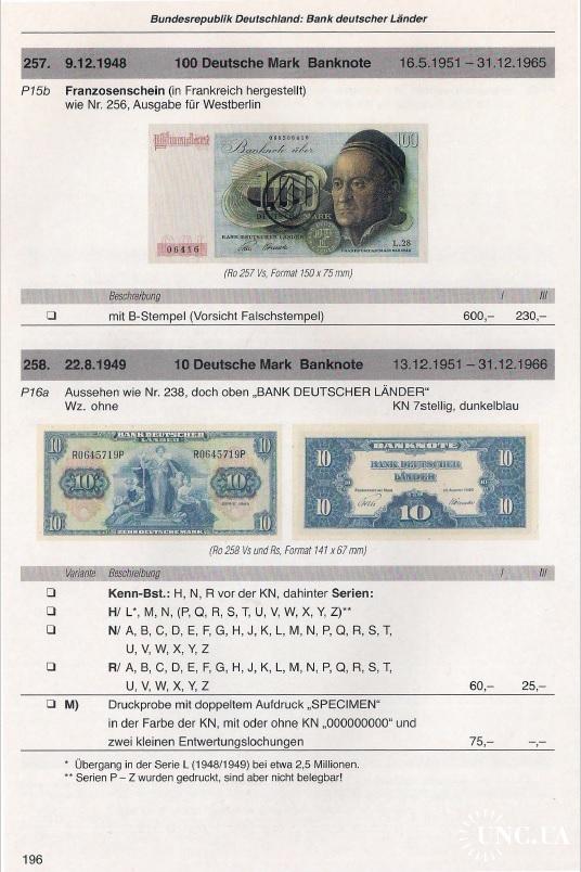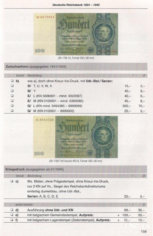 Описание: Каталог Германских банкнот с 1874 года. 18 издание.Для каждого знака приведено: дата выпуска в обращение, дата изъятия из обращения, описание аверса и реверса, водяной знак, тип серийного номера, серии денежного знака, фотографии лицевой и оборотной сторон, размер знака, описание вариантов. Дана денежная оценка для двух степеней сохранности знака.Справочные разделы по типографиям печатавшим денежные знаки, водяным знакам.Полная переработка классического каталога Х. Розенберга, каталог вышел под фамилией Х. Грабовски. Фактически можно говорить о каталоге Х. Грабовски.Полностью изменена нумерация каталога. Номер каталога состоит из трехбуквенного кода раздела и порядкового номера знака. Ранее такая нумерация была применена в каталоге Grabowski H. Deutsches Notgeld, Band 10 Das Papiergeld der deutschen Länder 1871 - 1948. Для справки приведены номера по классическому каталогу Х. Розенберга и каталогу Пика (Краузе), в ряде разделов даны ссылки на иные, профильные каталоги.Структурно каталог разбит на эпохи Германского государства. Разбивка достаточно формальна, по временным рамкам. Деление далеко не бесспорное, т.к. некоторые однотипные знаки оказали разнесены по разным эпохам.В каталоге широко представлены пробные денежные знаки.