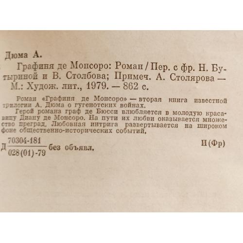 Дюма. Графиня де Монсоро. Издательство: Художественная литература. 1979 год. Состояние очень хорошее