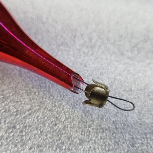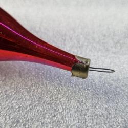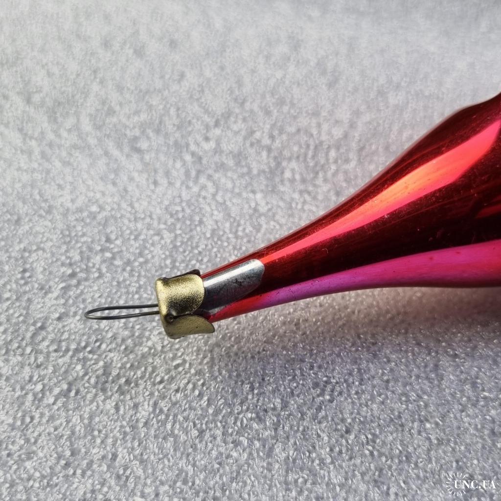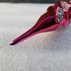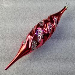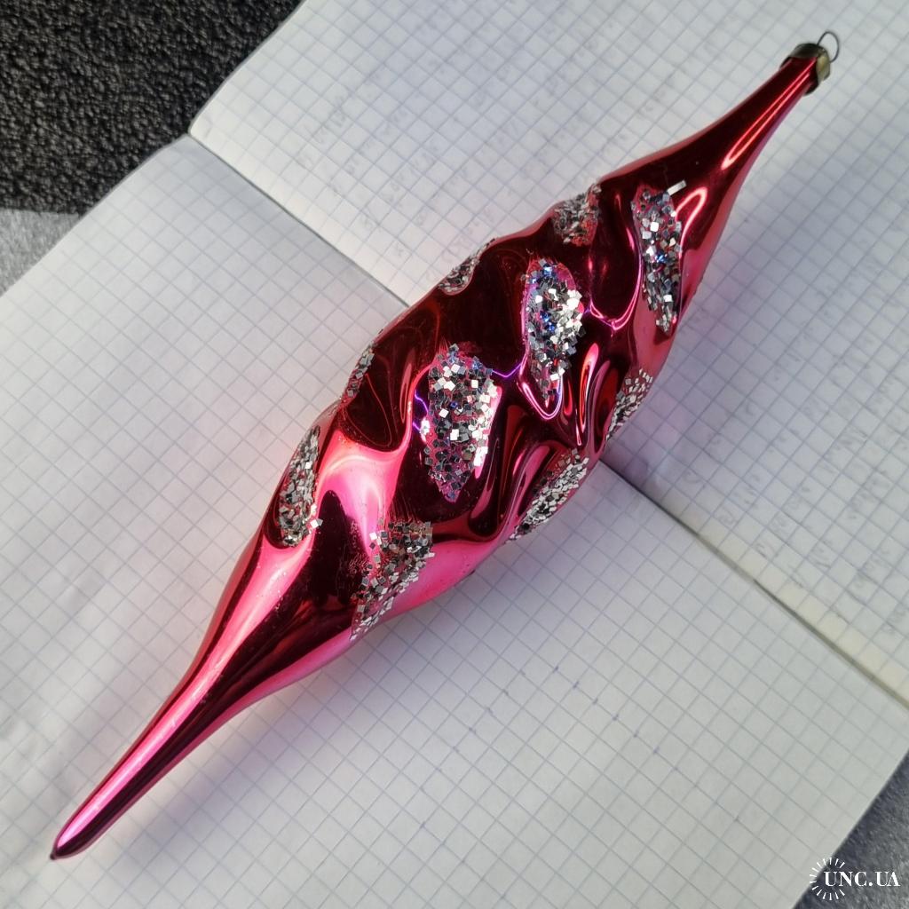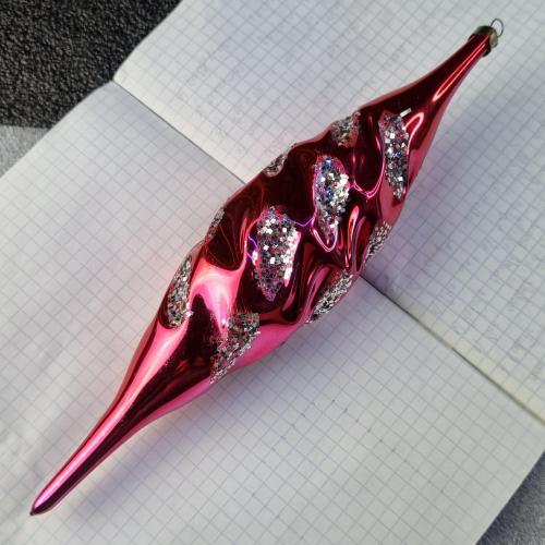 Скляна, рожево-червона, з срібними блискітками, витончена форма.