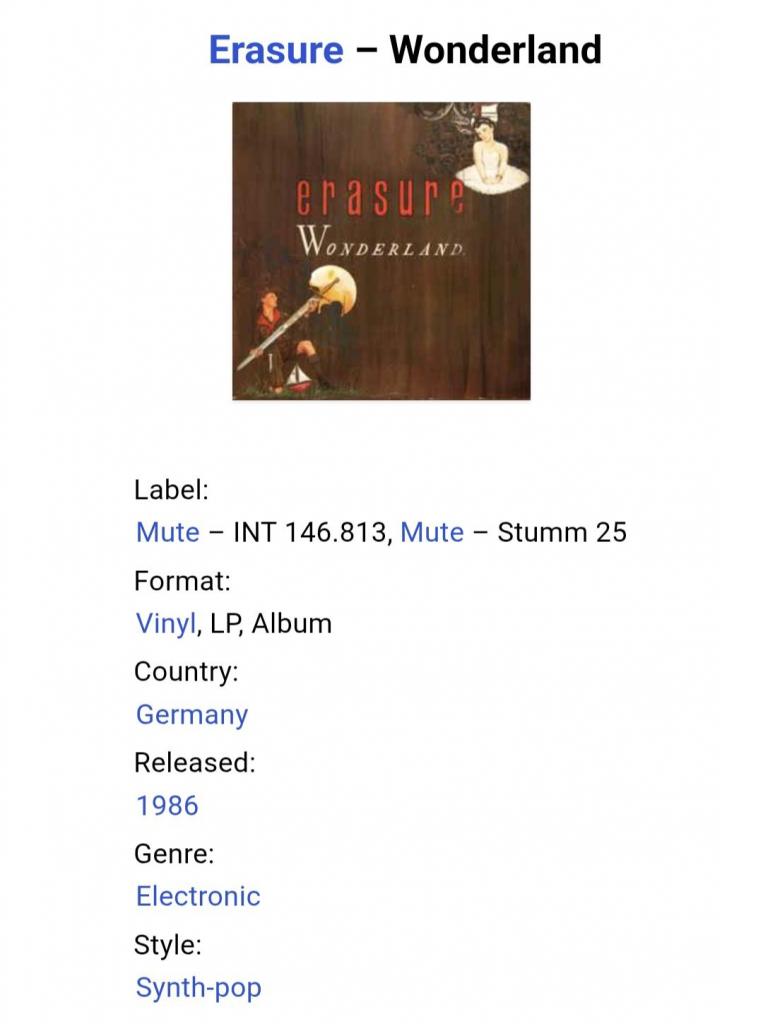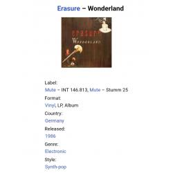 Вінілова платівка. Перший, в дискографії, студійний альбом Британського електронного сінті поп дуету Erasure, який складається з виконавців Вінса Кларка та Енді Бела (Wonderland) 1986. Випуск фірми (Mute) Germany, 1986-ий рік. Оригінальне, першопресове, Німецьке видання. Стан платівки ЕХ+. Стан конверту EX+. В комплекті внутрішня вставка (OIS). Відправка по Україні службами доставки: Нова Пошта, Укр Пошта, Делівері. Також відправляємо посилки за кордон по цілому світу.