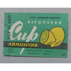 Этикетка - плавлений сир ЛИМОННИЙ -УССР