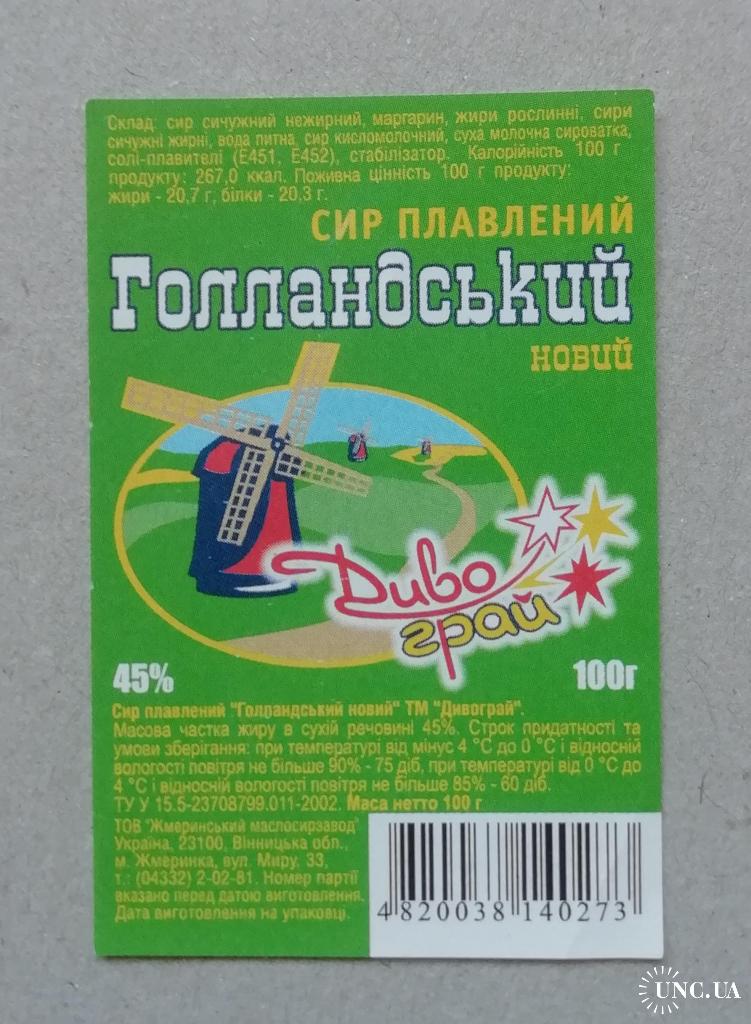 Этикетка - ПЛАВЛЕНЫЙ СИР ГОЛЛАНДСЬКИЙ ДИВОГРАЙ
