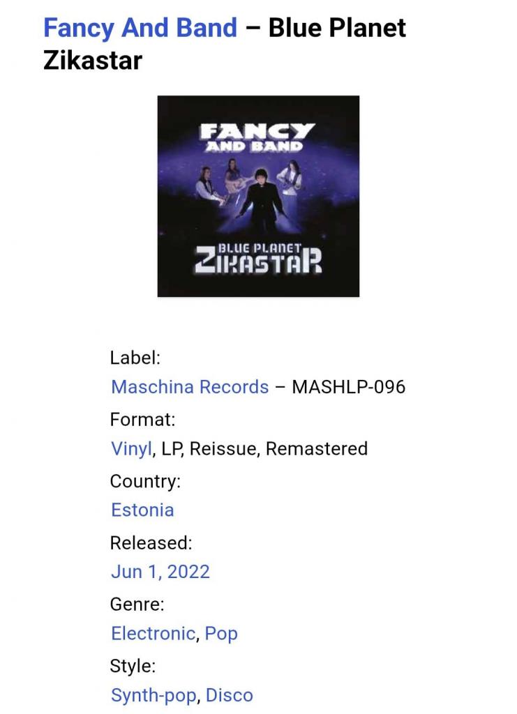 1981-2000Вінілові платівки. Сьомий, в дискографії, студійний, альбом Німецького євро диско виконавця, Манфреда Алоїс Зегіта, більше відомого під сценічним ім,ям Fancy (Blue Planet Zikastar) 1995. Випуск фірми (Maschina Records) Estonia, 2022-ий рік. Лімітований тираж (Limited Edition). Видання нове, запаковане. Категорія S/S. Відправка по Україні службами доставки: Нова Пошта, Укр Пошта, Делівері. Також відправляємо посилки за кордон по цілому світу.
