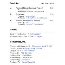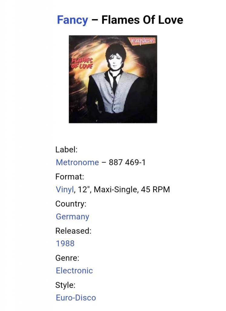 1981-2000Вінілова платівка. Десятий, в дискографії, студійний максі сингл (EP 12), Німецького євро диско виконавця, Манфреда Алоїс Зегіта, більше відомого під сценічним ім,ям Fancy (Flames Of Love) 1988. Випуск фірми (Metronome) Germany, 1988-ий рік. Оригінальне, рідне, першопресове Німецьке видання. Стан платівки EX+. Стан конверту ЕХ+. Відправка по Україні службами доставки: Нова Пошта, Укр Пошта, Делівері. Також відправляємо посилки за кордон по цілому світу.