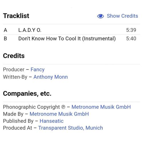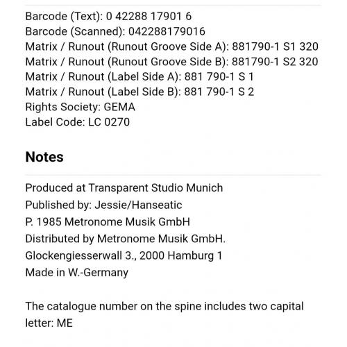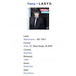 1981-2000Вінілова платівка. Четвертий, в дискографії, студійний максі сингл (EP 12), Німецького євро диско виконавця, Манфреда Алоїс Зегіта, більше відомого під сценічним ім,ям Fancy (L.A.D.Y O.) 1985. Випуск фірми (Metronome) Germany, 1985-ий рік. Оригінальне, рідне, першопресове Німецьке видання. Стан платівки EX+. Стан конверту ЕХ+. Відправка по Україні службами доставки: Нова Пошта, Укр Пошта, Делівері. Також відправляємо посилки за кордон по цілому світу.