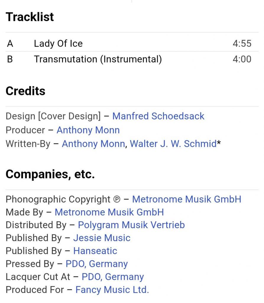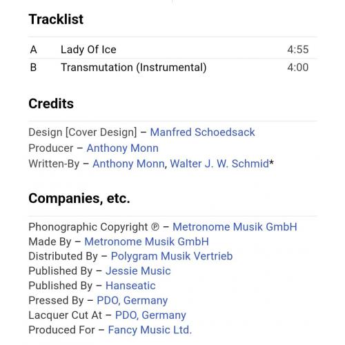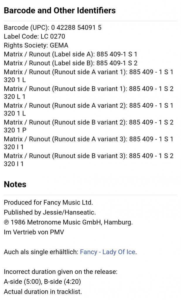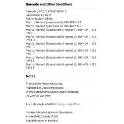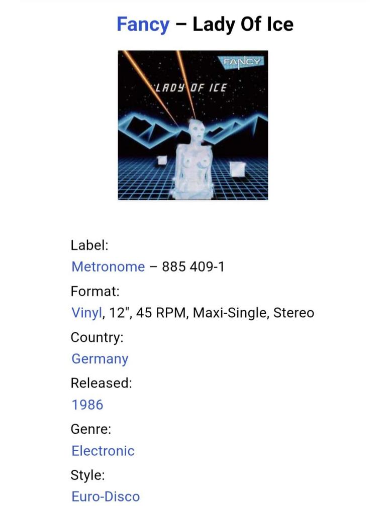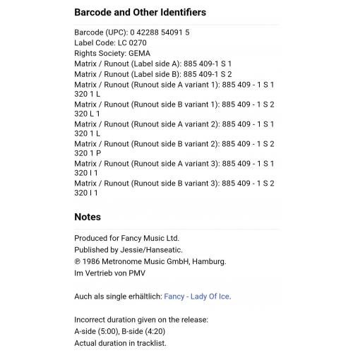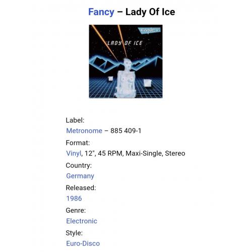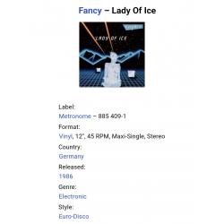 1981-2000Вінілова платівка. Сьомий, в дискографії, студійний максі сингл (EP 12), Німецького євро диско виконавця, Манфреда Алоїс Зегіта, більше відомого під сценічним ім,ям Fancy (Lady Of Ice) 1986. Випуск фірми (Metronome) Germany, 1986-ий рік. Оригінальне, рідне, першопресове Німецьке видання. Стан платівки ЕХ. Стан конверту ЕХ+. Відправка по Україні службами доставки: Нова Пошта, Укр Пошта, Делівері. Також відправляємо посилки за кордон по цілому світу.