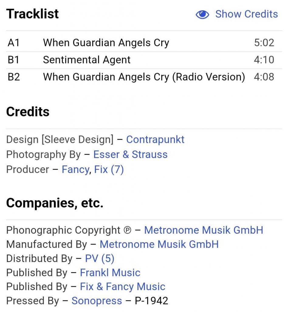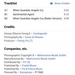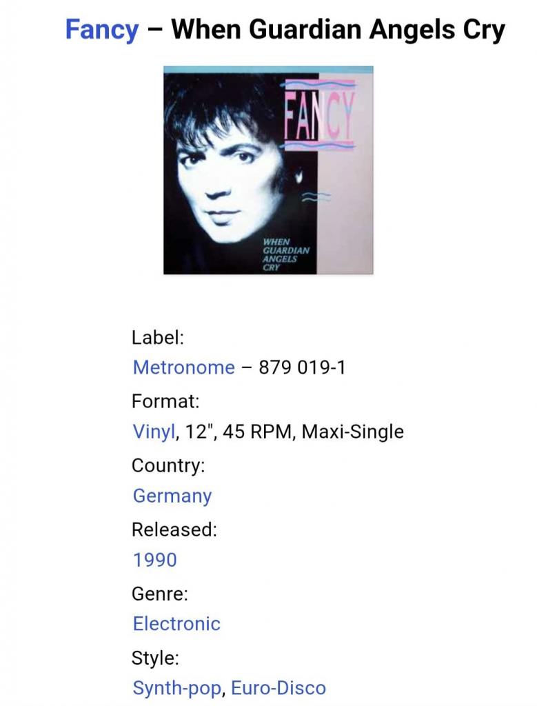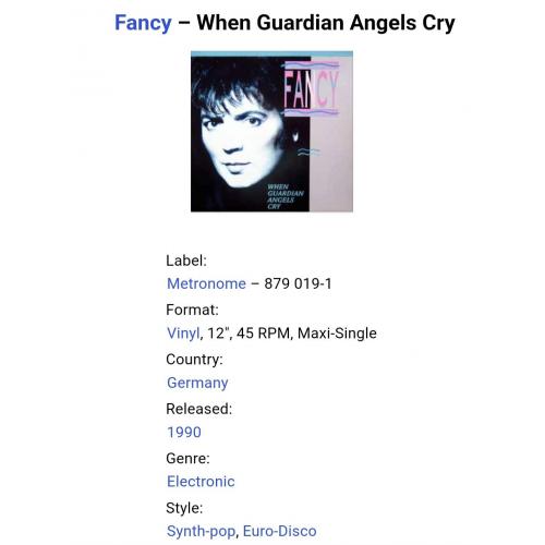 Вінілова платівка. Сімнадцятий, в дискографії, студійний максі сингл (EP 12), Німецького євро диско виконавця, Манфреда Алоїс Зегіта, більше відомого під сценічним ім,ям Fancy (When Guardian Angels Cry) 1990. Випуск фірми (Metronome) Germany, 1990-ий рік. Оригінальне, рідне, першопресове Німецьке видання. Стан платівки EX+/EX. Стан конверту ЕХ+. Відправка по Україні службами доставки: Нова Пошта, Укр Пошта, Делівері. Також відправляємо посилки за кордон по цілому світу.
