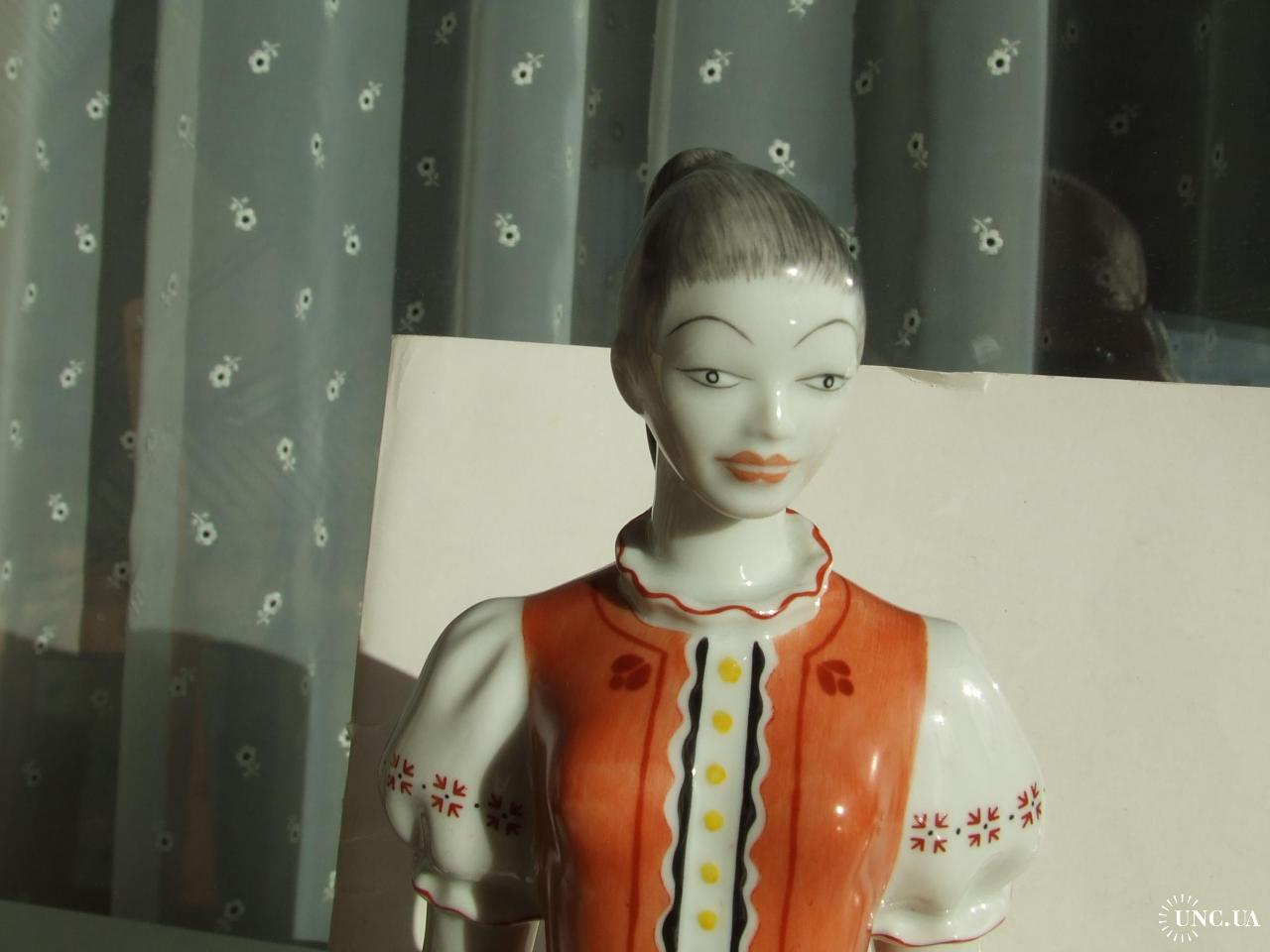 Фарфор дівчина в костюмі роз.30х11 см. Венгрия Гологазо 1950 рр. ручна розпис.