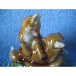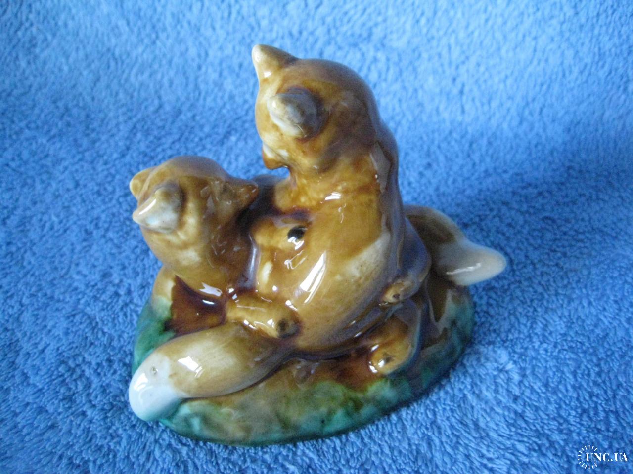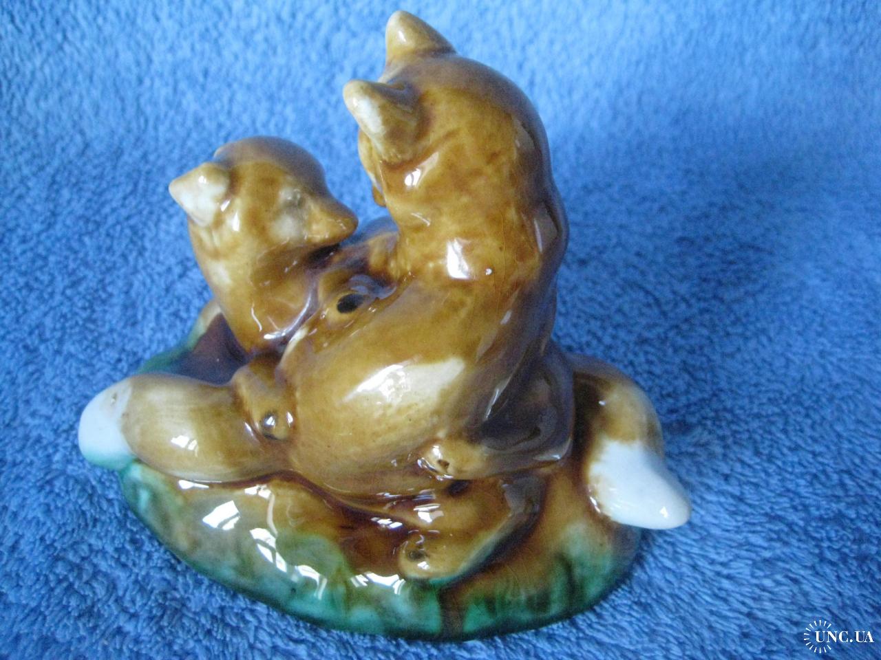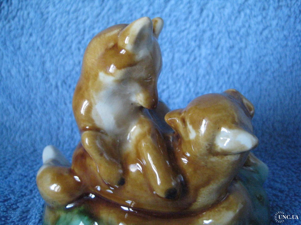 №1141. Фаянсова (поливна кераміка) фігурка, статуетка - Лисички, Грайливі руді лисенята, 1960-1970 СРСР. Стан прошу оцінювати по фото (фігурка без реставрації, cколів та тріщин). Висота - 9см. Пересилка по Україні - Нова пошта. Для киян можливість зустрічі та перегляду (неділя метро Нивки). За кордон не відправляю!
