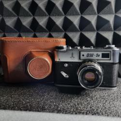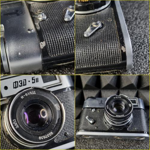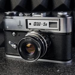 Колекційна радянська дальномірна камера ФЕД-5В, ювілейна версія з емблемою Олімпійських ігор. У комплекті — оригінальний об'єктив Індустар-61 Л/Д 2.8/53, відомий своєю різкістю та контрастністю. Камера має механічний затвор, ручне налаштування експозиції, ідеально підходить для поціновувачів плівкової фотографії та колекціонерів.