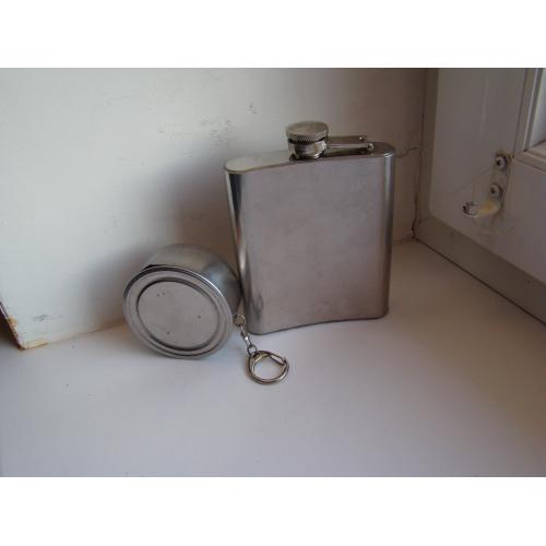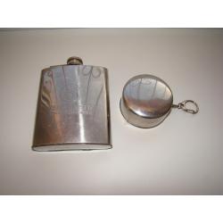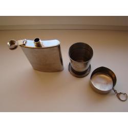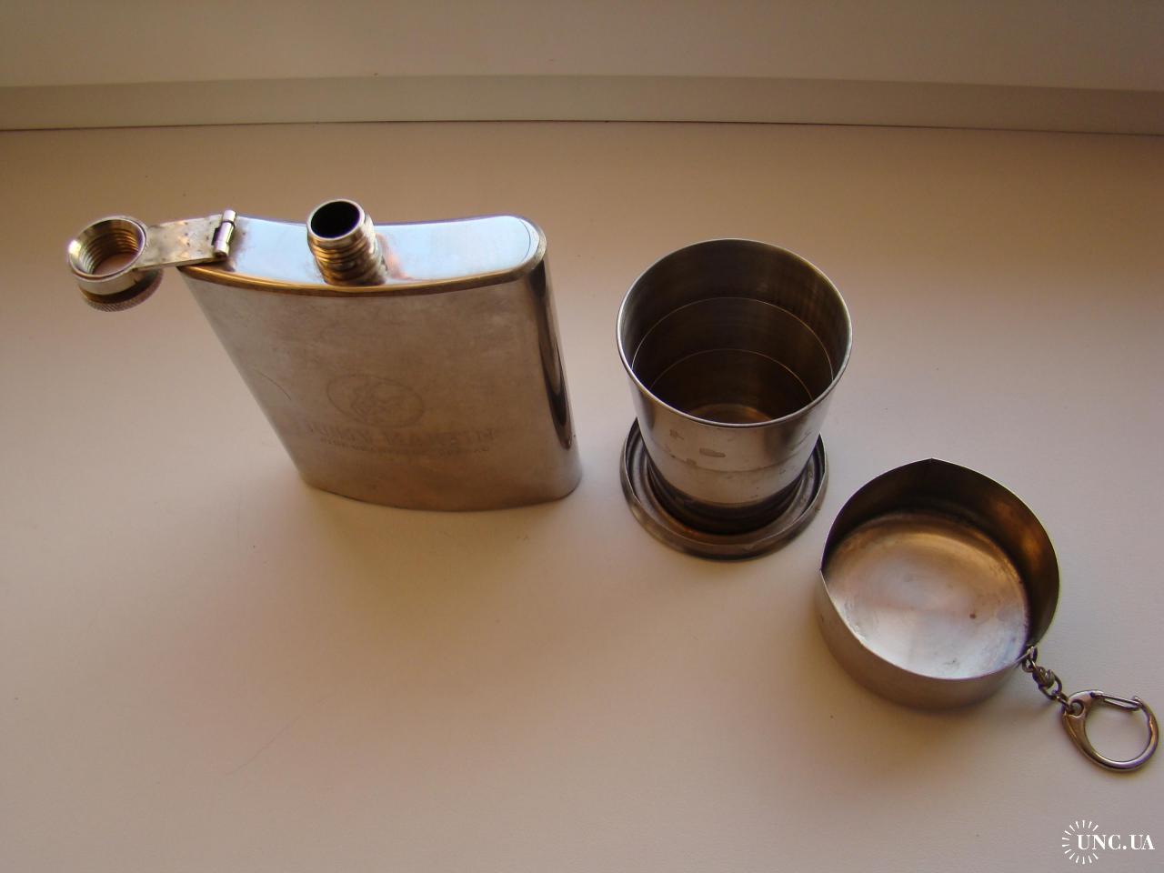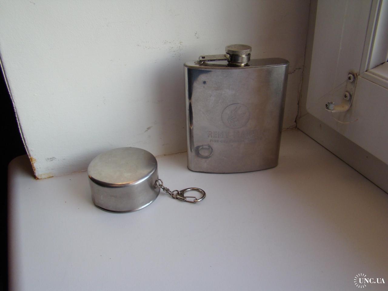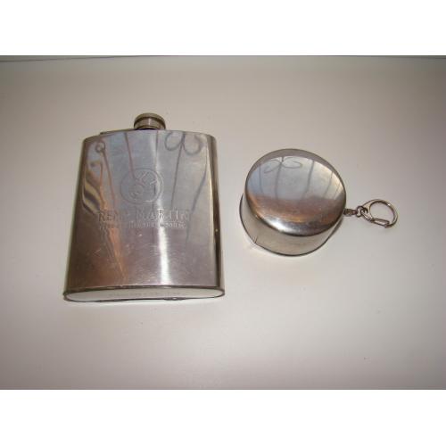 Фляга Remy Martin и раскладной стаканчик, все из нержавеющей стали. Оба предмета в хорошем состоянии, воду держат хорошо, не протекают (проверено). Объем фляги 200 мл, объем стаканчика 100 мл. В остальном все как на фото.