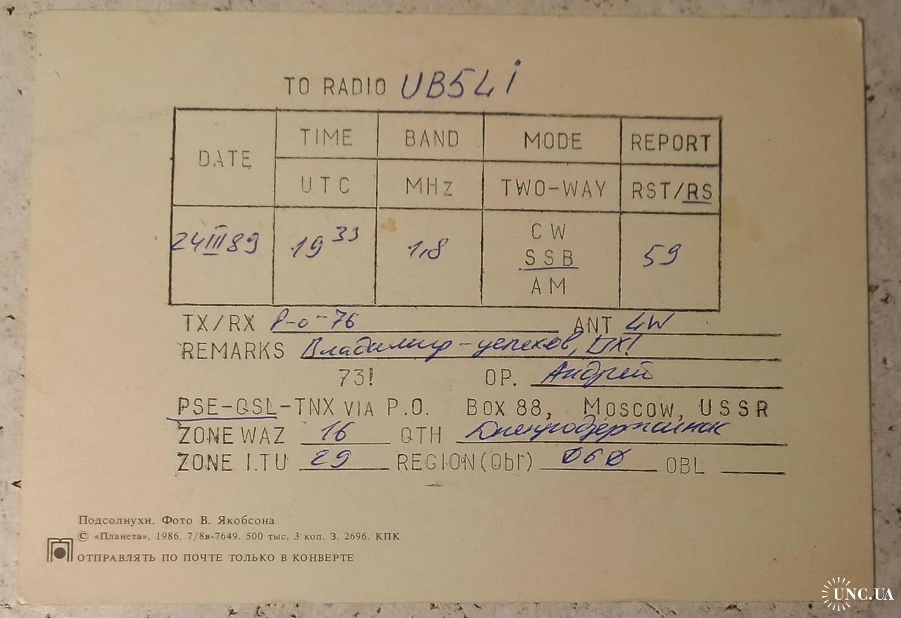 Доставка за счет покупателя Новой или Укрпочтой, заказным письмом, или при личной встрече. Предоплата денежным переводом на карту Приват, через Укрпочту, или другим согласованным способом. Возможно комбинирование лотов. Большой ассортимент, включая QSL-карточки. Готов отправлять за границу.