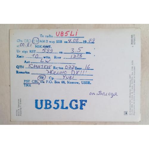 1961-1980Изд-во «Планета». Москва.1977. Т. 4 млн. На обратной стороне – технические данные радио-обмена. Дефекты: незначительно подмяты уголки. на лицевой стороны проступают бесцветные следы от надписей обратной стороны.