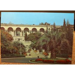1981-2000Здание поражает своим монументальным размахом, а из окон номеров открывается живописный вид на морское побережье. В этом месте часто бывали многие видные деятели Советской эпохи. Фото размещено на почтовой авиа открытке с маркой. Минсвязи СССР. 1981. Чистая. Открытка без дефектов. Состояние отличное.