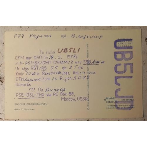 Доставка за счет покупателя Новой или Укрпочтой, заказным письмом, или при личной встрече. Предоплата денежным переводом на карту Приват, через Укрпочту, или другим согласованным способом. Возможно комбинирование лотов. Большой ассортимент, включая QSL-карточки. Готов отправлять за границу.