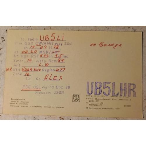 Доставка за счет покупателя Новой или Укрпочтой, заказным письмом, или при личной встрече. Предоплата денежным переводом на карту Приват, через Укрпочту, или другим согласованным способом. Возможно комбинирование лотов. Большой ассортимент, включая QSL-карточки. Готов отправлять за границу.