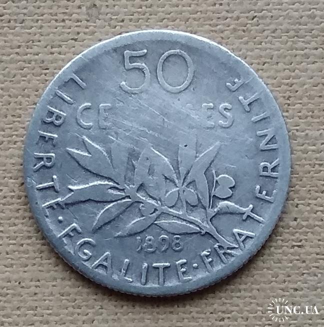 OriginalФранция 50 сантимов, 1898 г, серебро