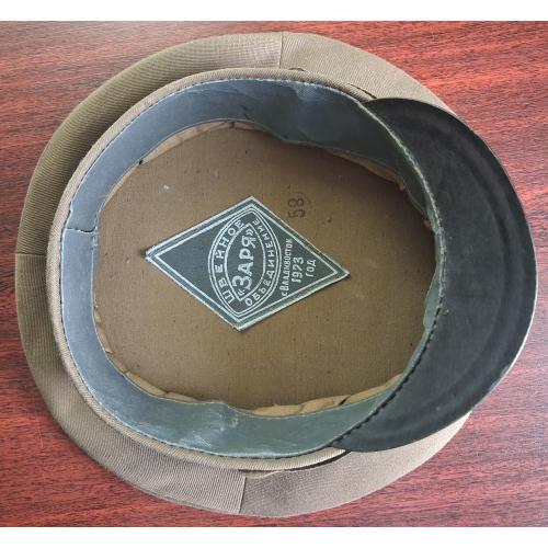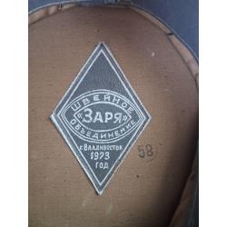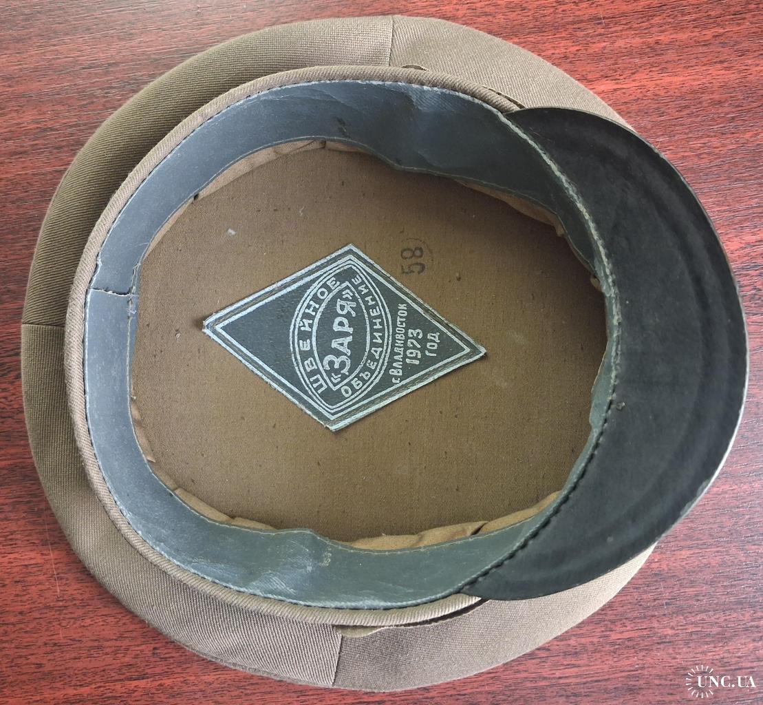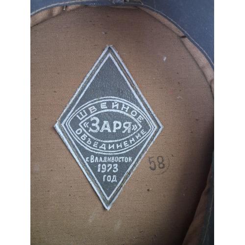 Низкая тулья, фибровый козырек с двумя "волнами" говорят о том, что это самый первый вариант полевых фуражек обр. 69 г. Фуражек, пошитых во Владивостоке, раньше никогда не встречал. Поэтому такая цена.
