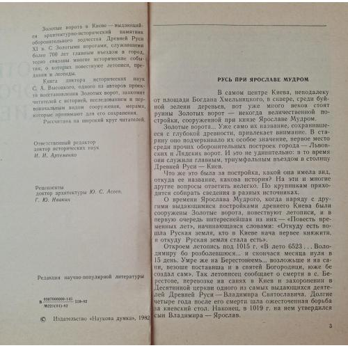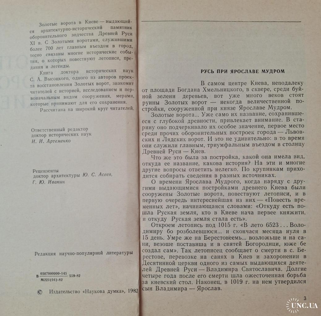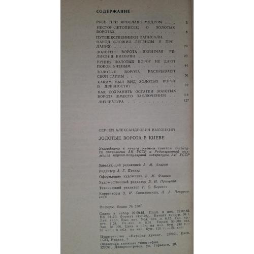 Золотые ворота в Киеве [Текст] / С. А. Высоцкий. — Киев : Наукова думка, 1982. — 125, [3] с. : ілюстрації.